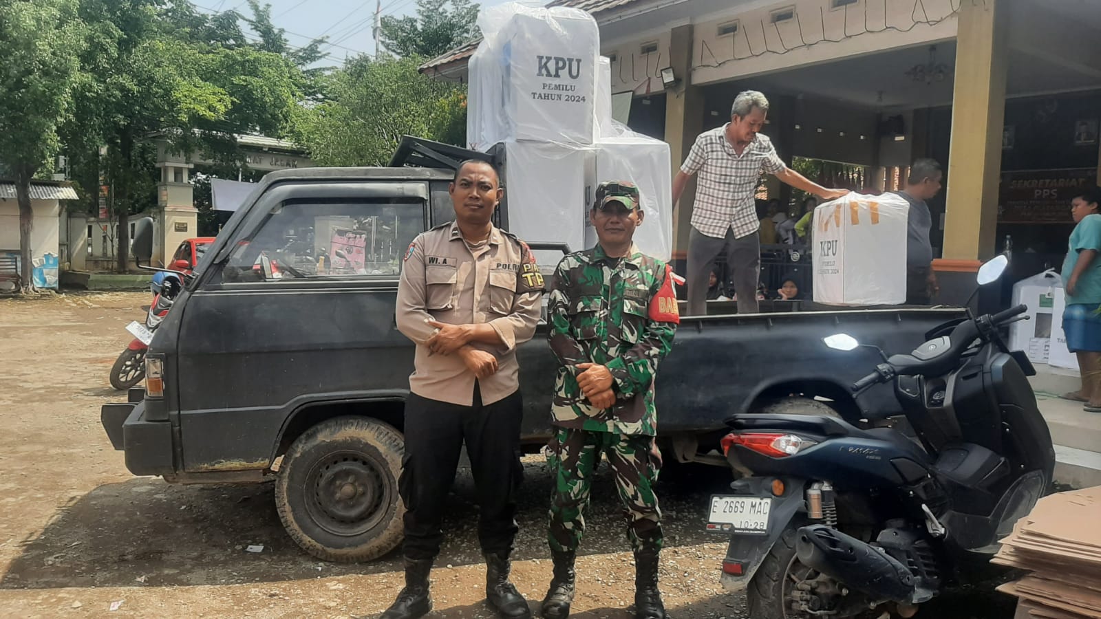 Gebang – Kamis (15/02/2024) Anggota Petugas Pam TPS di Wilayah Hukum Polsek Gebang Polresta Cirebon dibawah pimpinan Kapolsek Gebang. Akp. Wawan Hermawan, S.H selaku Padal Pam, melaksanakan giat pengamanan dan pengawalan pendistribusian logistik Pemilu Ta. 2024.