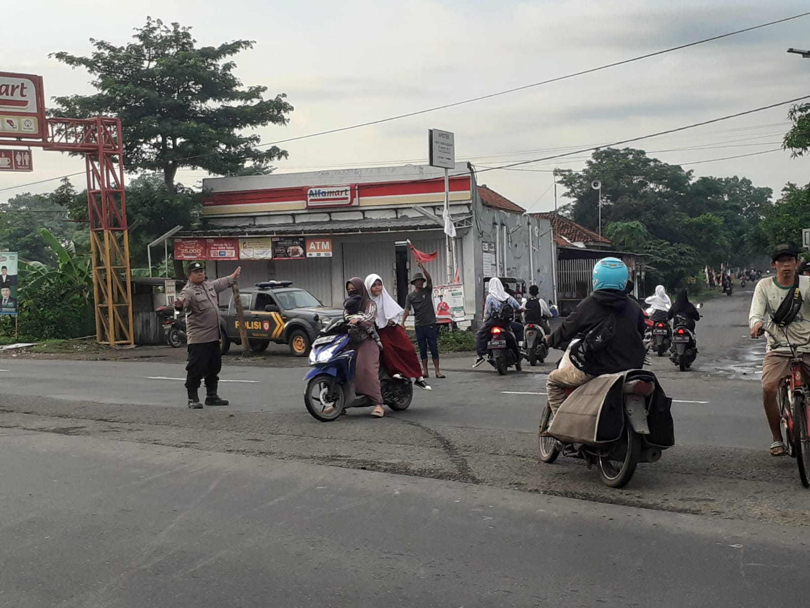 Jajaran Polsek Susukan Polresta Cirebon Polda Jabar, melaksanakan Gatur Lalu lintas pagi di perempatan bunder Kec Susukan Kab Cirebon.