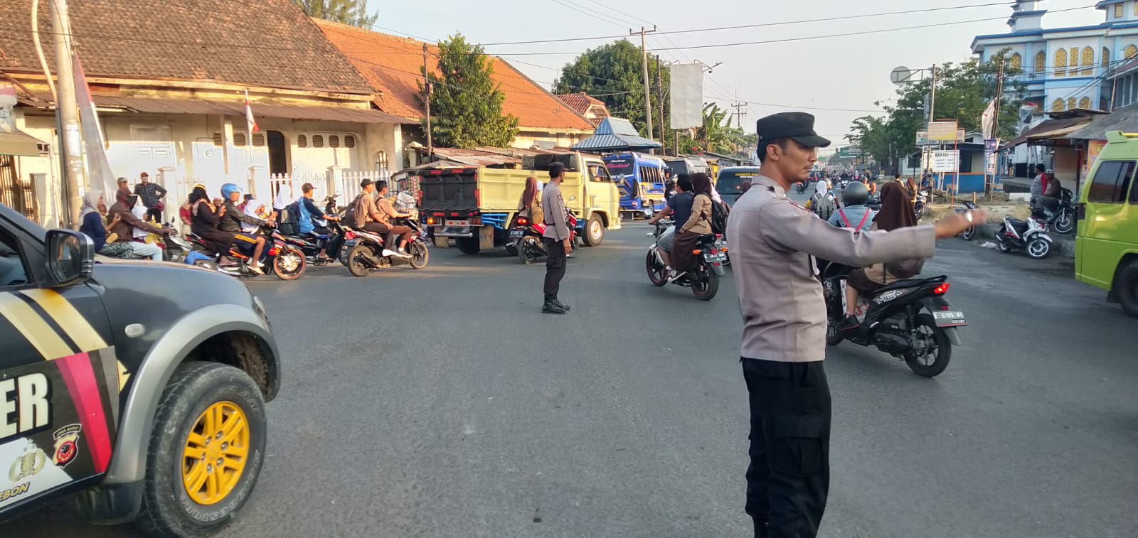 Lemahabang, Crb – Pagi hari merupakan jam sibuk lalu lintas jalan, apalagi pada saat anak-anak sekolah mulai beraktifitas menuju sekolahnya masing-masing, hal ini tentu beresiko terjadinya beberapa kerawanan seperti kemacetan, pencurian dengan kekerasan, laka lantas dan bahkan tawuran anak sekolah, untuk itu sebagai salah satu bentuk kinerja kepolisian dalam melakukan pelayanan kepada masyarakat Polsek Lemahabang Polresta Cirebon melaksanakan kegiatan pengaturan lalu lintas berbagai titik rawan salah satunya di pertigaan Cipeujeuh, Senin pagi (30/10/2023).