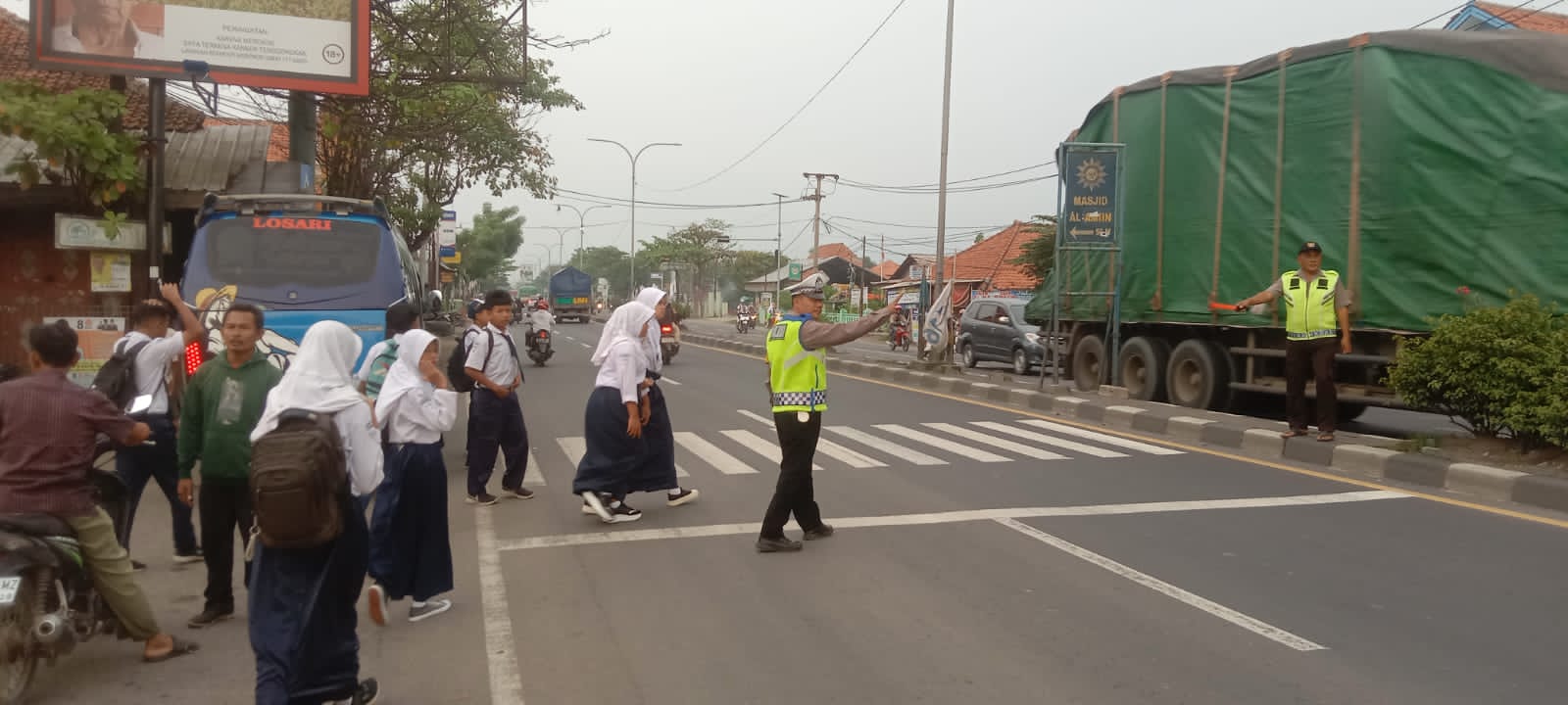 Losari — Dalam kegiatan pengaturan lalu lintas yang dilaksanakan oleh Personil Unit Lantas Polsek Losari menempati lokasi rawan laka lantas (Blackspot) serta di lokasi simpang tiga dan ada beberapa tempat pengaturan yang sengaja di ploting di depan sekolah yang bersinggungan langsung dengan jalan raya, tujuannya tidak lain untuk membantu Anak Sekolah menyeberang jalan guna menuju ke Sekolahnya. Jumat pagi (01/03/2024).