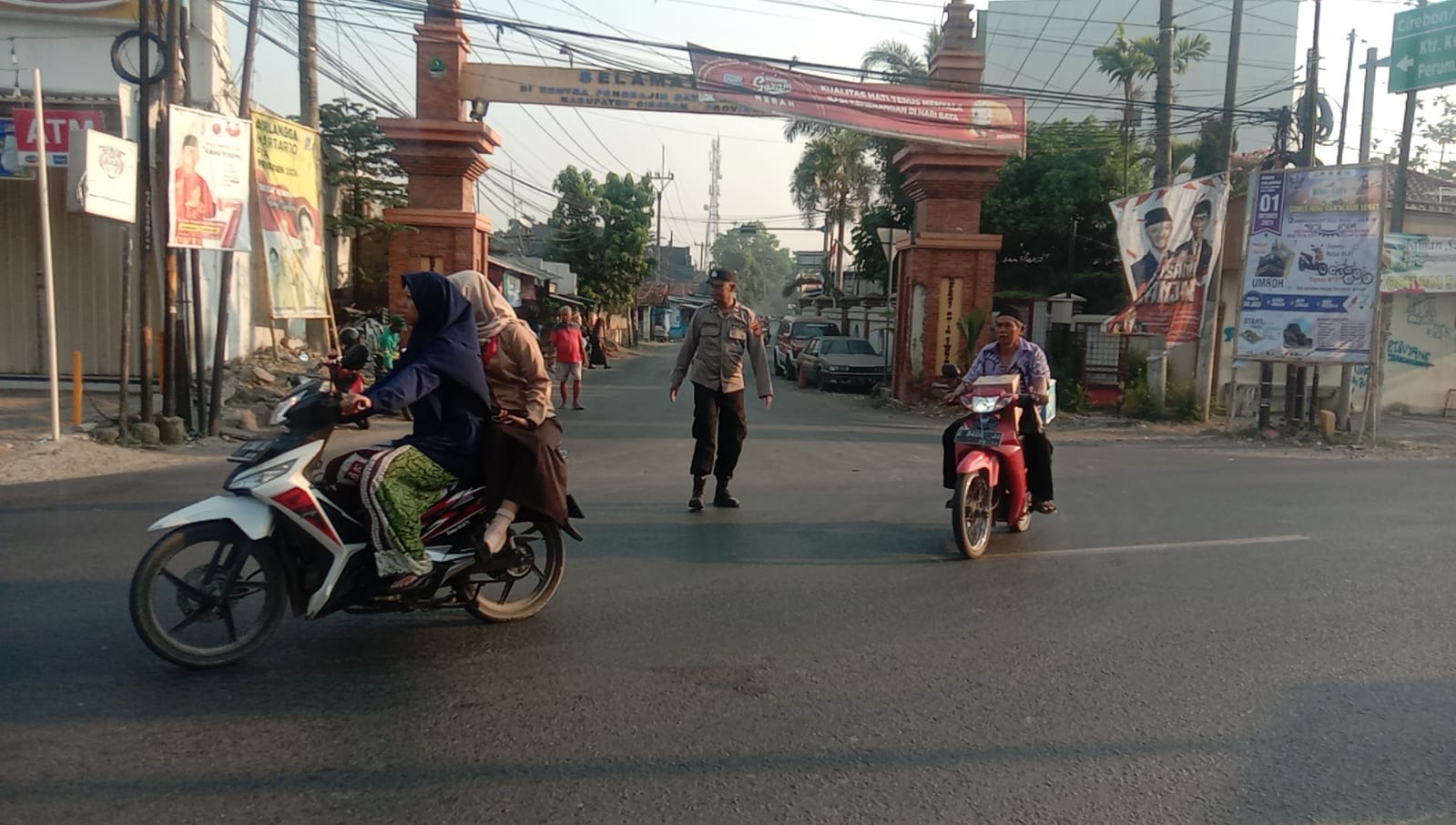 dalam melakukan Gatur Lalu lintas di pagi hari di Jalan Cirebon- Bandung tetapnya di pertigaan RS, Sumber Waras, Desa Ciwaringin Kecamatan Ciwaringin