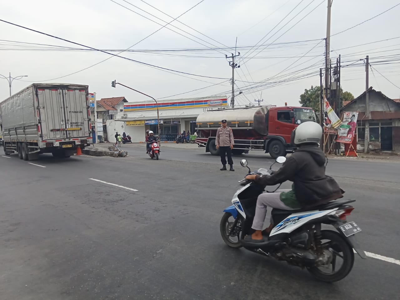 Jajaran Polsek Susukan Polresta Cirebon Polda Jabar, melaksanakan Gatur Lalu lintas pagi di perempatan bunder Kec Susukan Kab Cirebon.