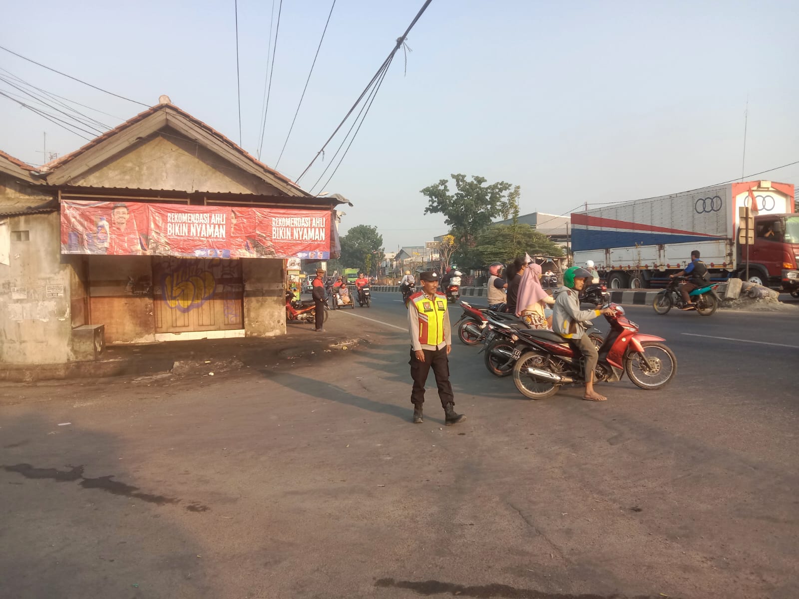 KAB. CIREBON – Personil Polsek Klangenan Polresta Cirebon selalu hadir ditengah-tengah masyarakat dengan memberikan pelayanan prima kepolisian, salah satunya dengan melakukan pengamanan dan pengaturan arus lalu lintas, demi kelancaran dan kenyamanan pengguna jalan serta meminimalisir terjadinya kecelakaan berlalu lintas, Rabu (20/09/2023).