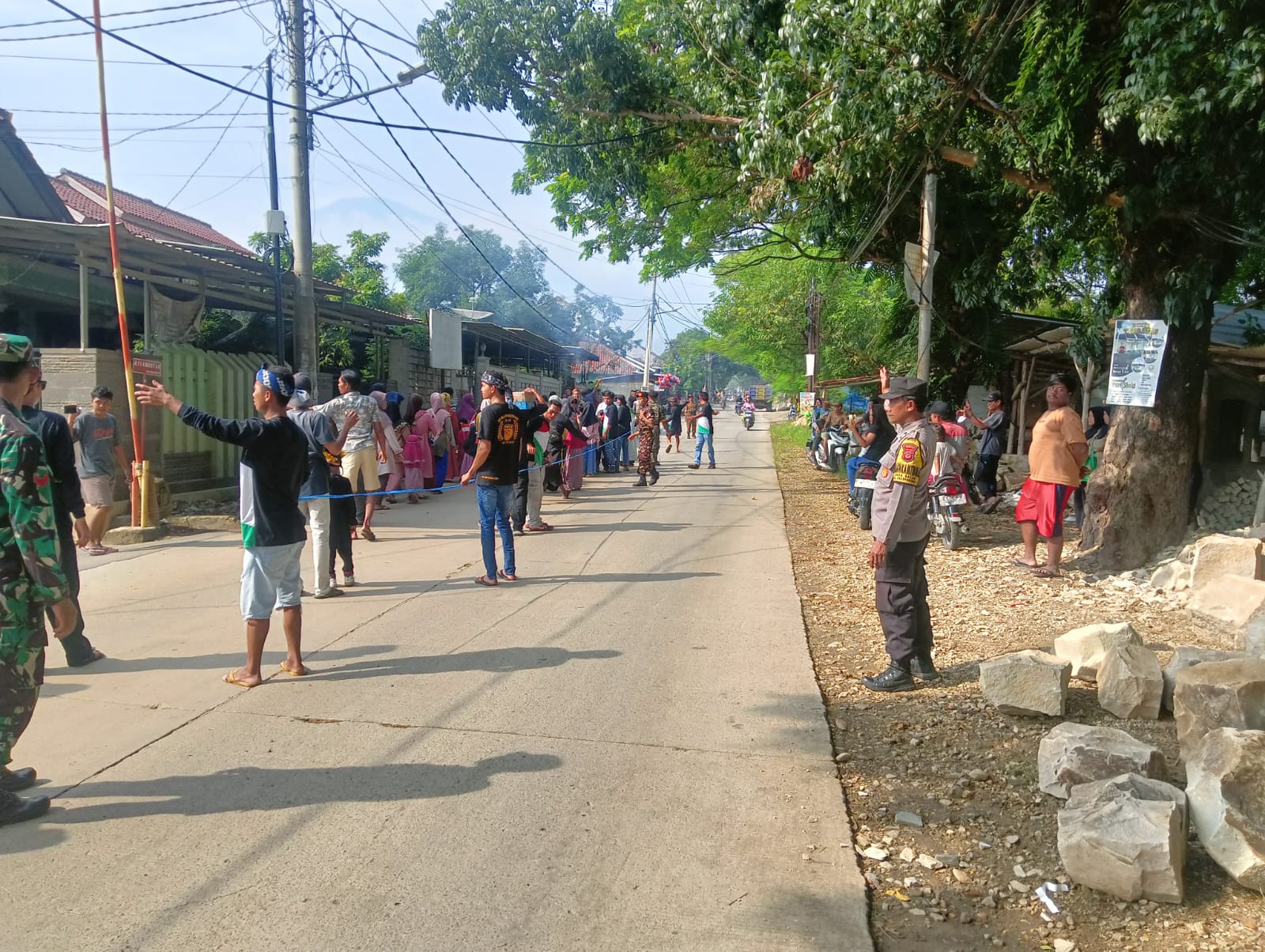 Dukupuntang – Bhabinkamtibmas Desa Balad Polsek Dukupuntang Polresta Cirebon Aiptu Hadi Fauzi, melakukan pengamanan kegiatan arak arakan dalam rangka Haul Buyut Bandung Ke 26 Tahun 2024, Kamis (07/03/2024.