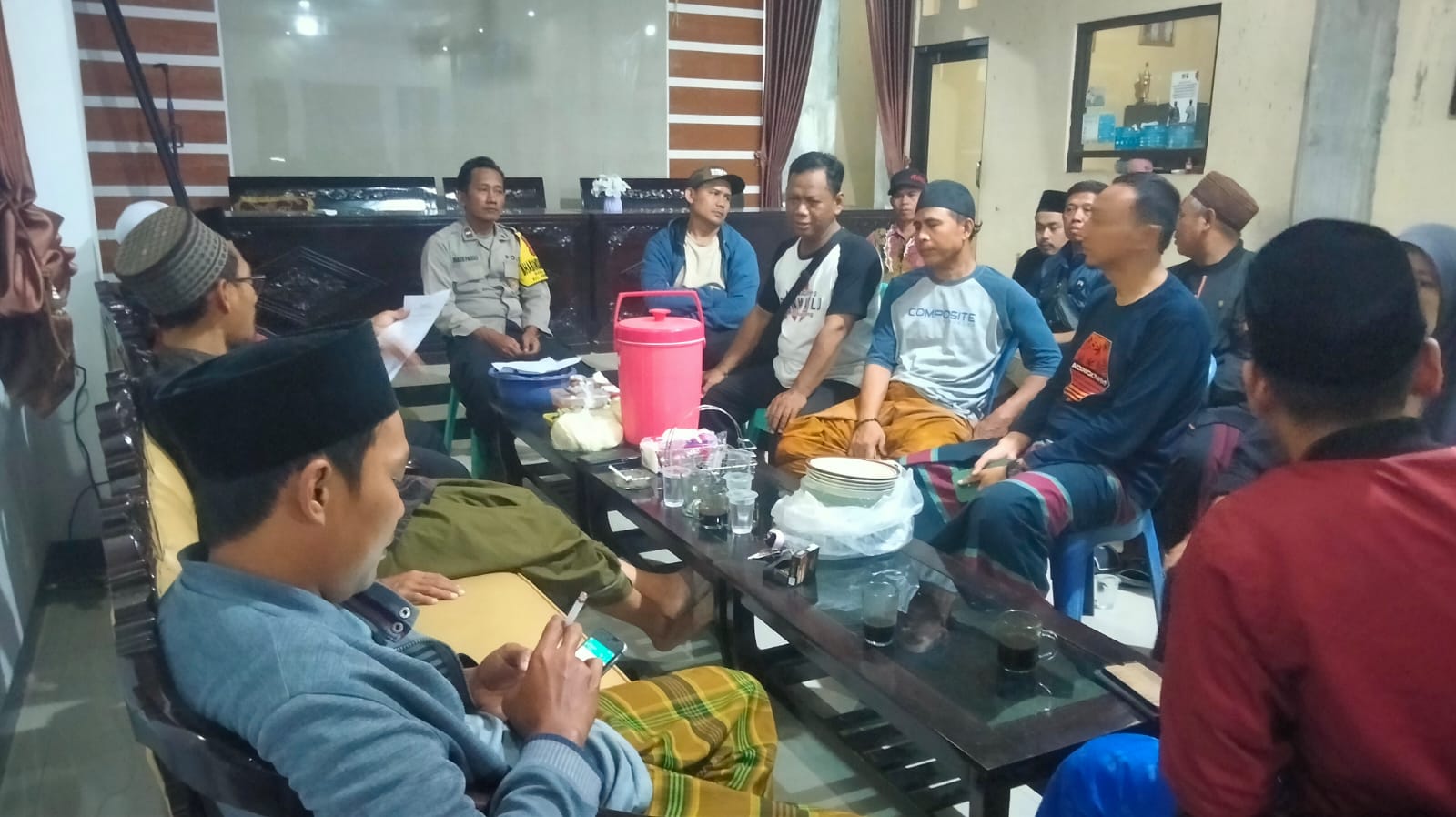 Bhabinkamtibmas Desa Balad Polsek Dukupuntang Polresta Cirebon Aipda Hadi Fauzi melaksanakan sambang Kamtibmas dengan PPS Pilwu Desa Balad, Jum’at Malam (25/08/2023).