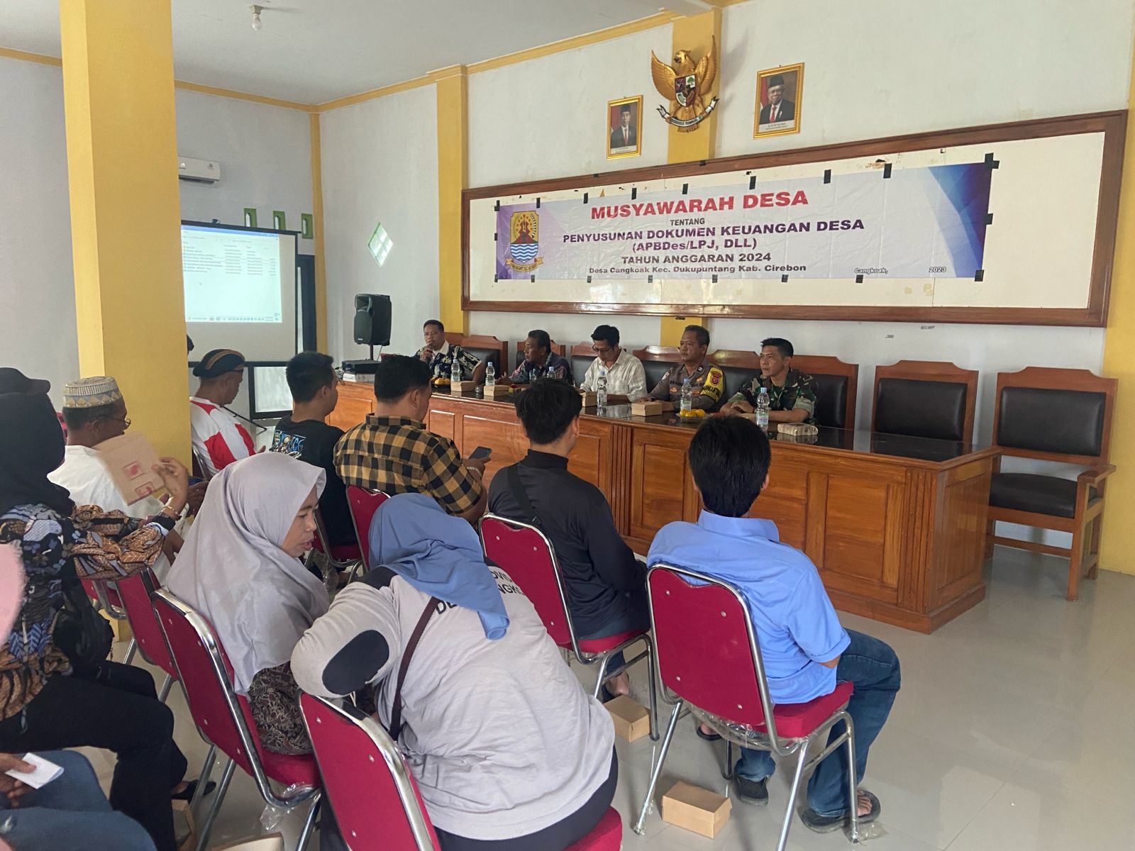 KAb. Cirebon – Bhabinkamtibmas Desa Cangkoak Polsek Dukupuntang Aiptu Ibrahim turut hadir dalam kegiatan Musyawarah Desa (Musdes) tentang Penyusunan Dokumen Keuangan Desa (APBDes/LPJ, dll) yang digelar oleh Pemdes Cangkoak, Jum’at (01/03/2024).