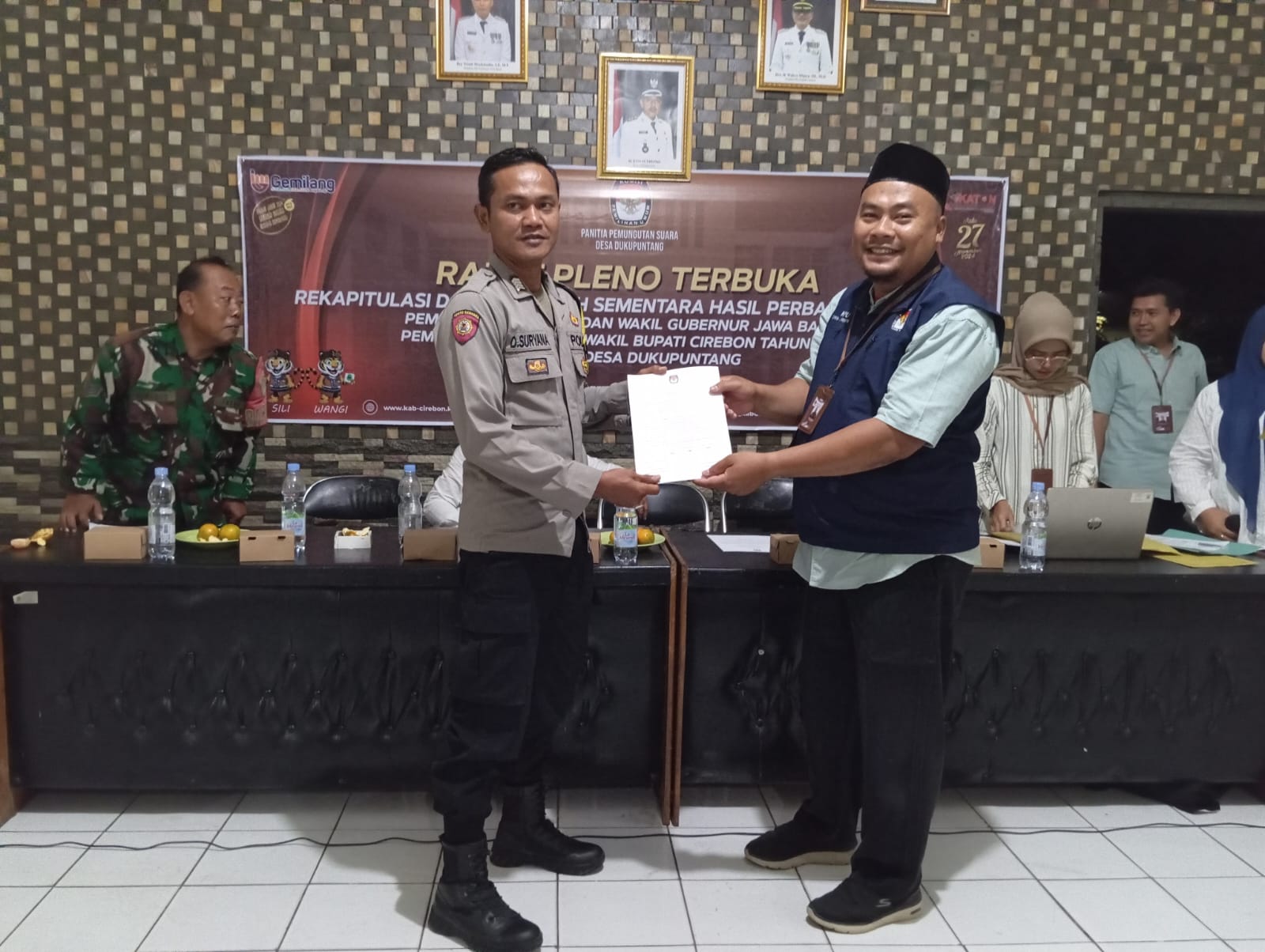 KAB. CIREBON – Bhabinkamtibmas Desa Dukupuntang Polsek Dukupuntang Polresta Cirebon Bripka Dede Suryana Hadi S, S.H menghadiri Rapat Pleno Terbuka Rekapitulasi Daftar Pemilih Sementara Hasil Perbaikan (DPSHP) Pilkada Tahun 2024. Dukupuntang, Sabtu (07/09/2024)