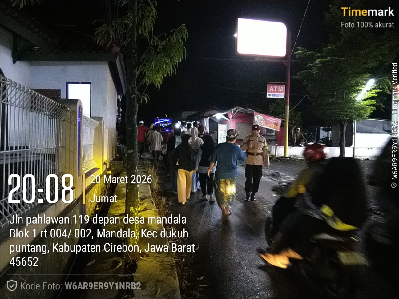 Cirebon – Dalam rangka menjaga situasi keamanan dan ketertiban masyarakat pada malam Idul Fitri 1447 H, Bhabinkamtibmas Desa Mandala Polsek Dukupuntang Polresta Cirebon melaksanakan pengamanan kegiatan takbir keliling di wilayah Desa Mandala, Kecamatan Dukupuntang, Jumat (20/03/2026).