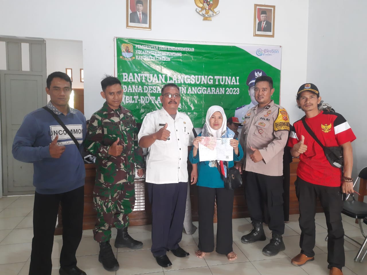 Bhabinkamtibmas Desa Sindangmekar Aipda Iwan TD bersama Babinsa Desa Sindangmekar Serda Ratma, mengawal Penyaluran Batuan Langsung Tunai tersebut berupa uang tunai sejumlah Rp. 300.000 / bln, yang dibagikan oleh Pemdes Sindangmekar dan diserahkan kepada 43 KPM (Keluarga Penerima Manfaat) sesuai dengan data sebagai penerima bantuan.