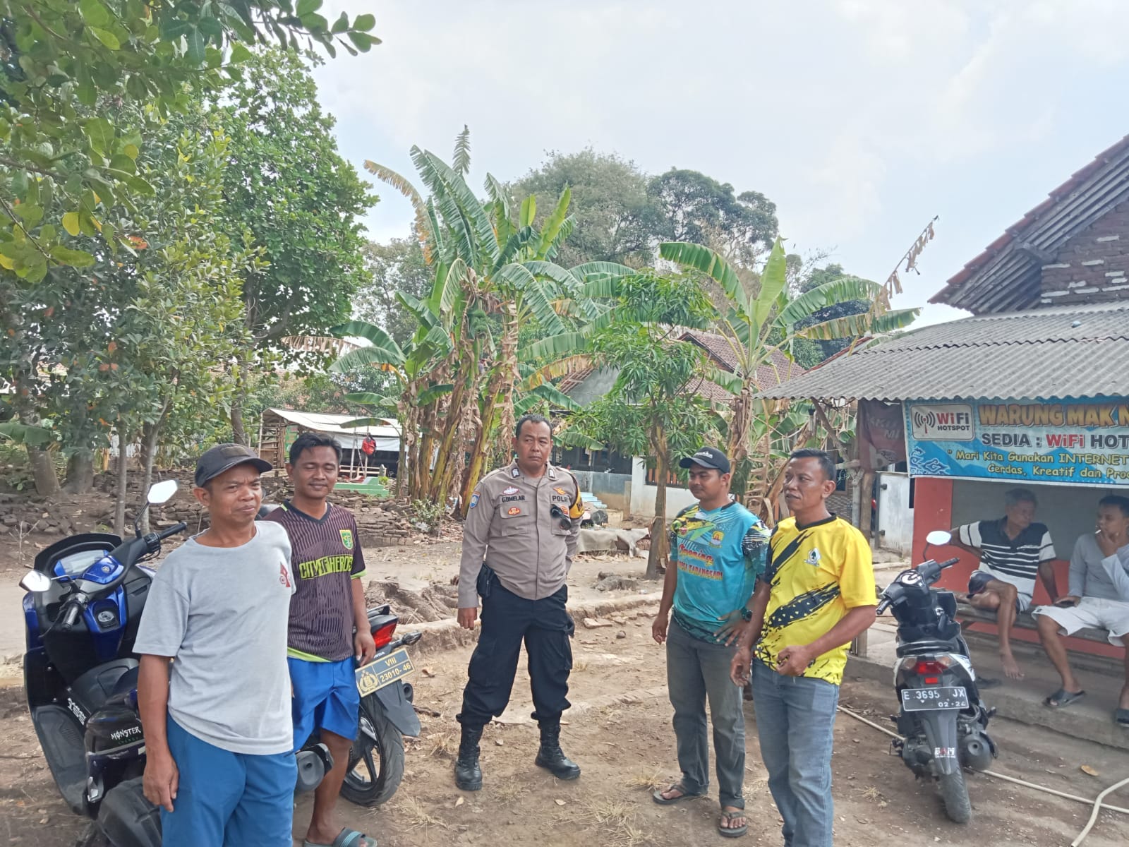 Bripka Gugum Bhabinkamtibmas Ds. Karangsari berikan himbauan kepada warga masyarakat. Minggu sore (27/8).
