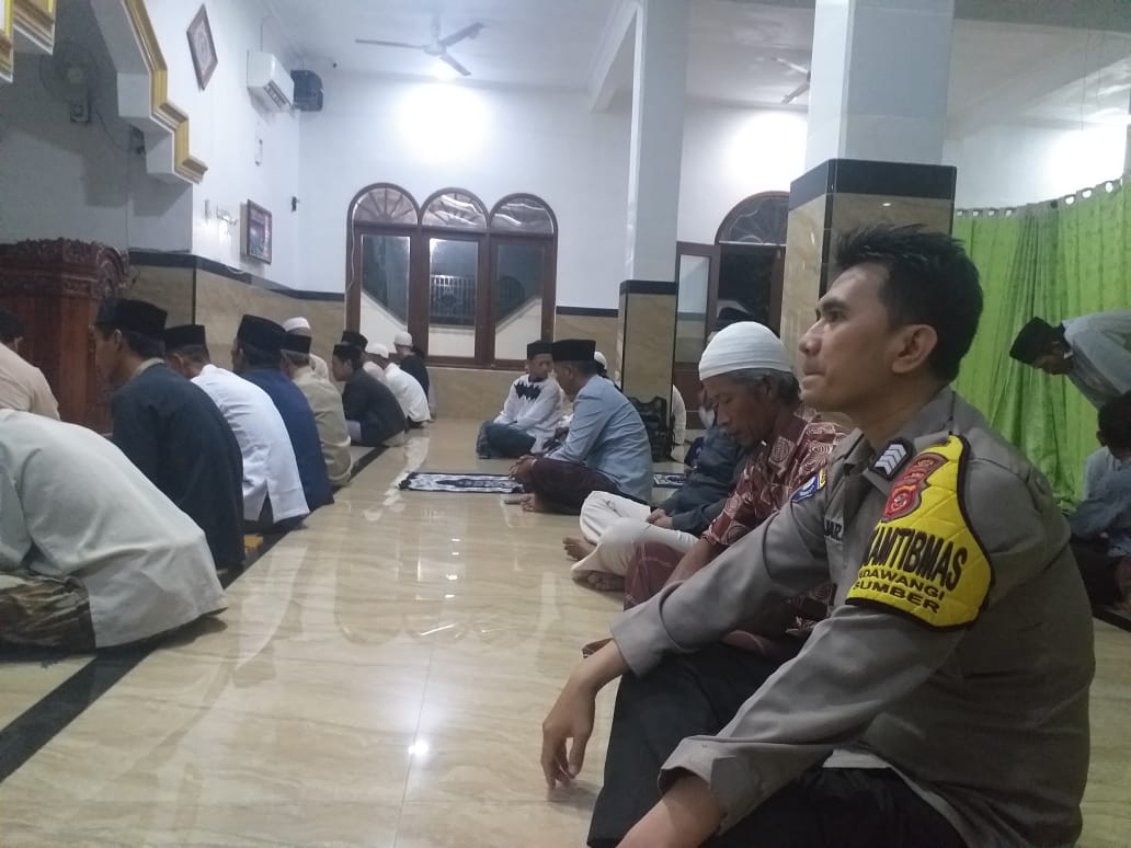 Sumber-Bhabinkamtibmas Ds Sidawangi Polsek Sumber Polresta Cirebon bersama kuwu Ds Sidawangi dan perangkat serta warganya melaksanakan Tarling (Tarawih Keliling) di Masjid Al Barokah blok seureuh beureum Rt 17 Rw 09 Ds Sidawangi Kec Sumber Kab Cirebon (21/3/2024).