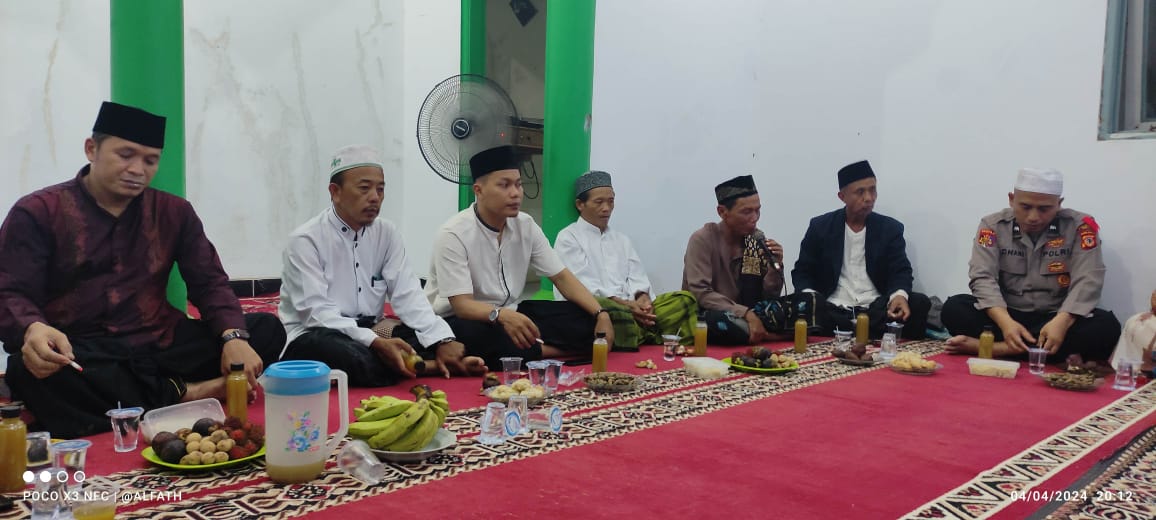 Selepas sholat tarawih Aipda Dhani Budiwan.SE memberikan pesan kamtibmas kepada masyarakat untuk menciptakan kondusifitas di Bulan Suci Ramadhan dan mengajak tokoh agama untuk ikut serta berperan aktif menjaga keamanan.