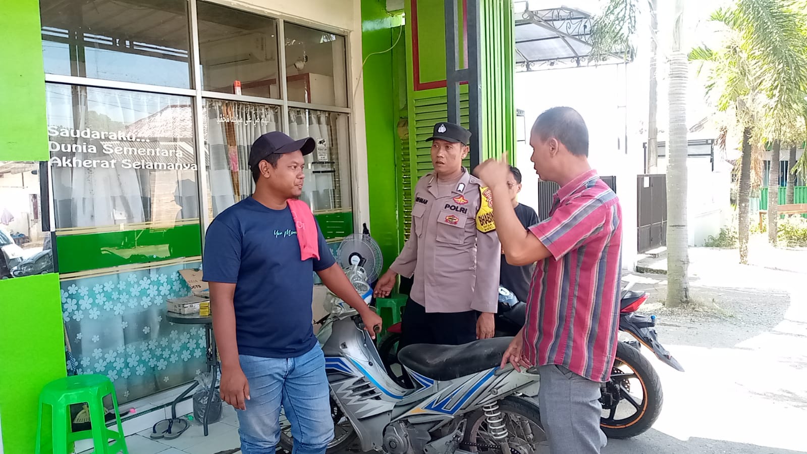 Ciwaringin – Dalam upaya untuk Ciptakan situasi yang Kondusif, Bhabinkamtibmas Desa Gintung Kidul, Polsek Ciwaringin Polresta Cirebon Polda Jabar, Bripka Rohman,Sambangi Parkir liar di Toko Mainan Nazwa Blok Karang Baru Desa Gintung Kidul, menyampaikan himbauan kamtibmas dan agar jika diberi uang parkir jangan sampai maksa harus dengan ikhlas, serta mengajak untuk bersama- sama berperan aktif dengan memberikan informasi jika akan terjadi tindak kriminal, guna menjaga Kamtibmas dilingkungan Toko dan sekitarnya,