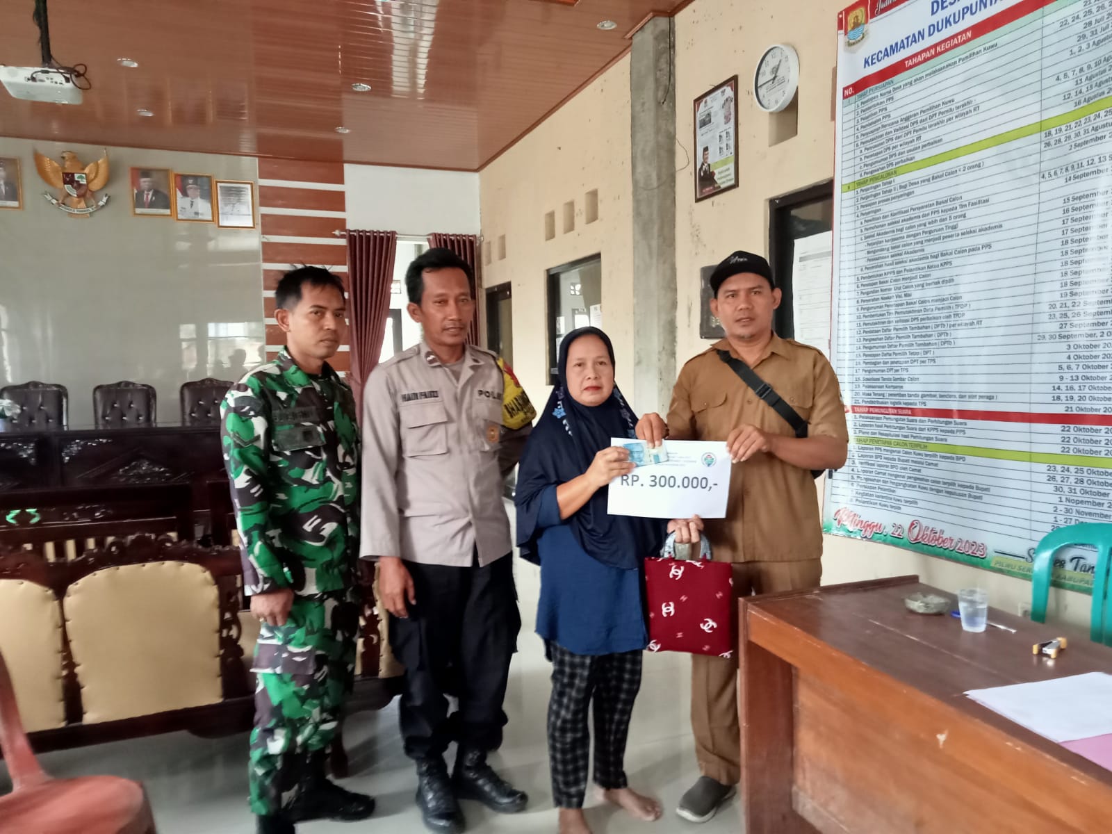 Penyaluran Bantuan Langsung Tunai TW IV Ta. 2023 tersebut disalurkan oleh Petugas dari Puskesos bersama Pemdes Balad, yang bertempat di aula kantor Desa Balad Kecamatan Dukupuntang Kabupaten Cirebon.