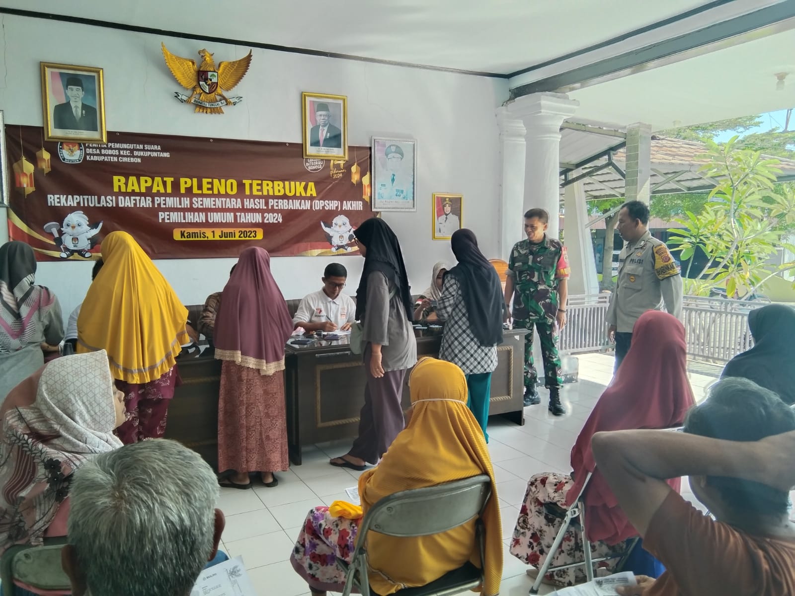 Kab. Cirebon – Bhabinkamtibmas Desa Bobos Polsek Dukupuntang Polresta Cirebon Bripka Endang Permana bersama dengan Babinsa Desa Bobos Pelda Supriyadi melaksanakan giat monitoring Penyaluran Bantuan Pangan Ta. 2023, untuk warga yang kurang mampu di Desa Bobos Kecamatan Dukupuntang Kabupaten Cirebon, Sabtu (10/06/2023)