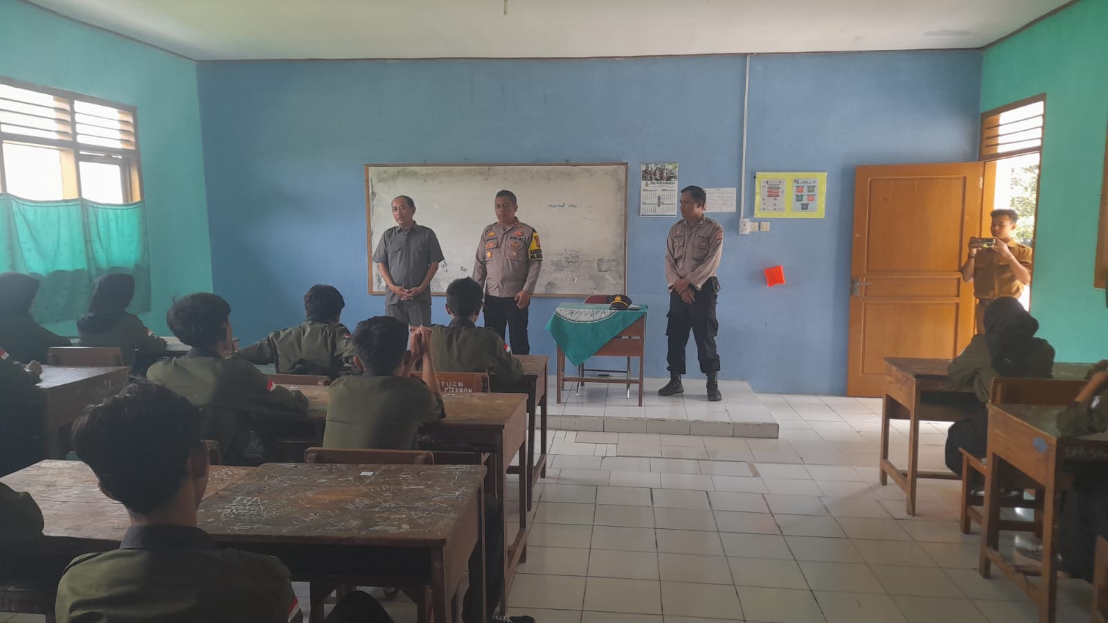 “Kanit Binmas Bripka Nanang Ruspandi pun menambahkan dalam himbauannya bahwa murid-murid jangan berani-berani melakukan tawuran dan melakukan bulying,” ujar Kanit Binmas