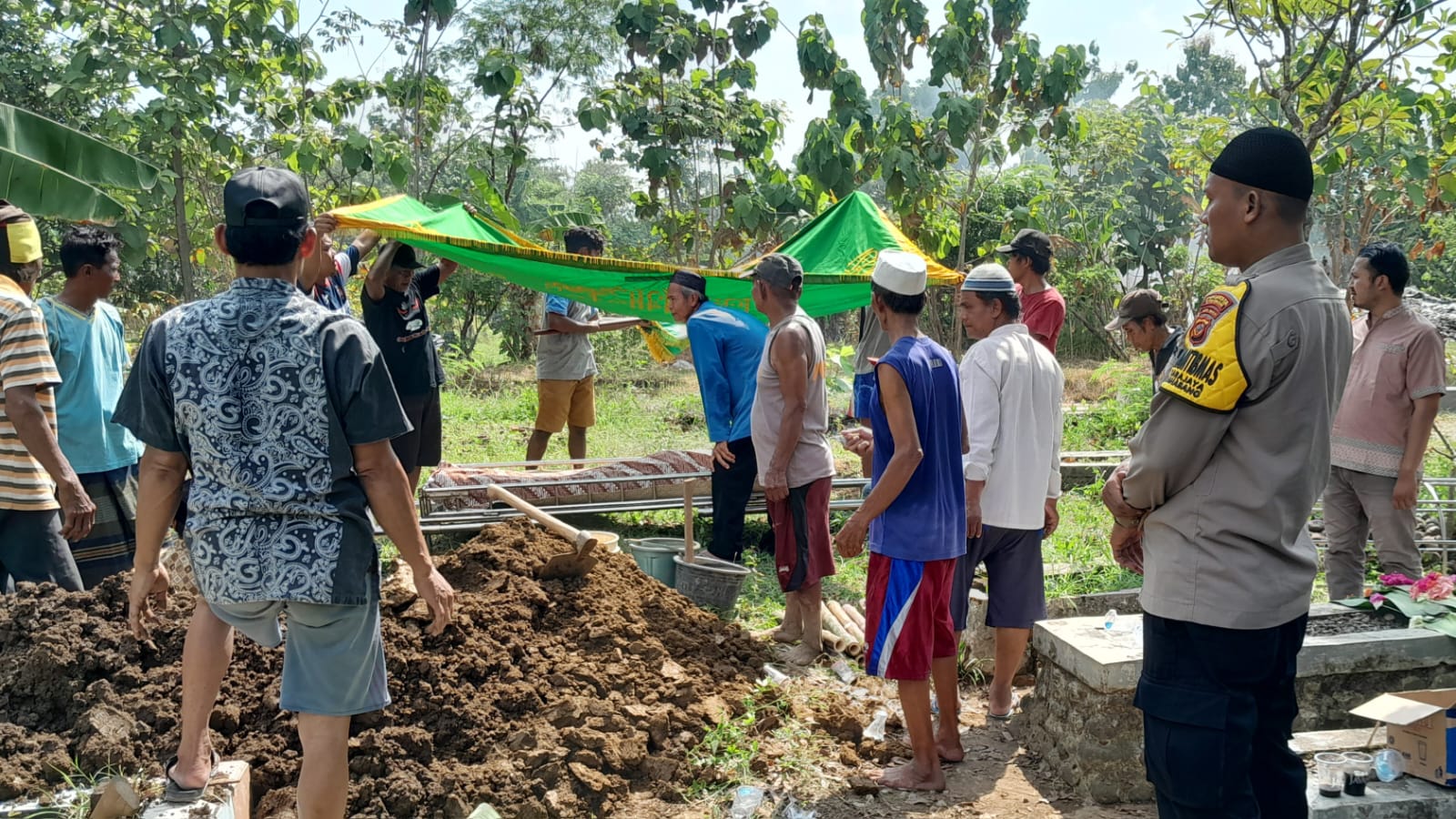 Lemahabang – Bripka Sandi aziz SH selaku Bhabinkamtibmas Desa sarajaya pada hari minggu tanggal 04 Mei 2023 mengantarkan salah satu warga desa binaan yang meninggal dunia di pemakaman umum Desa Sarajaya Kecamatan Lemahabang Kabupaten cirebon