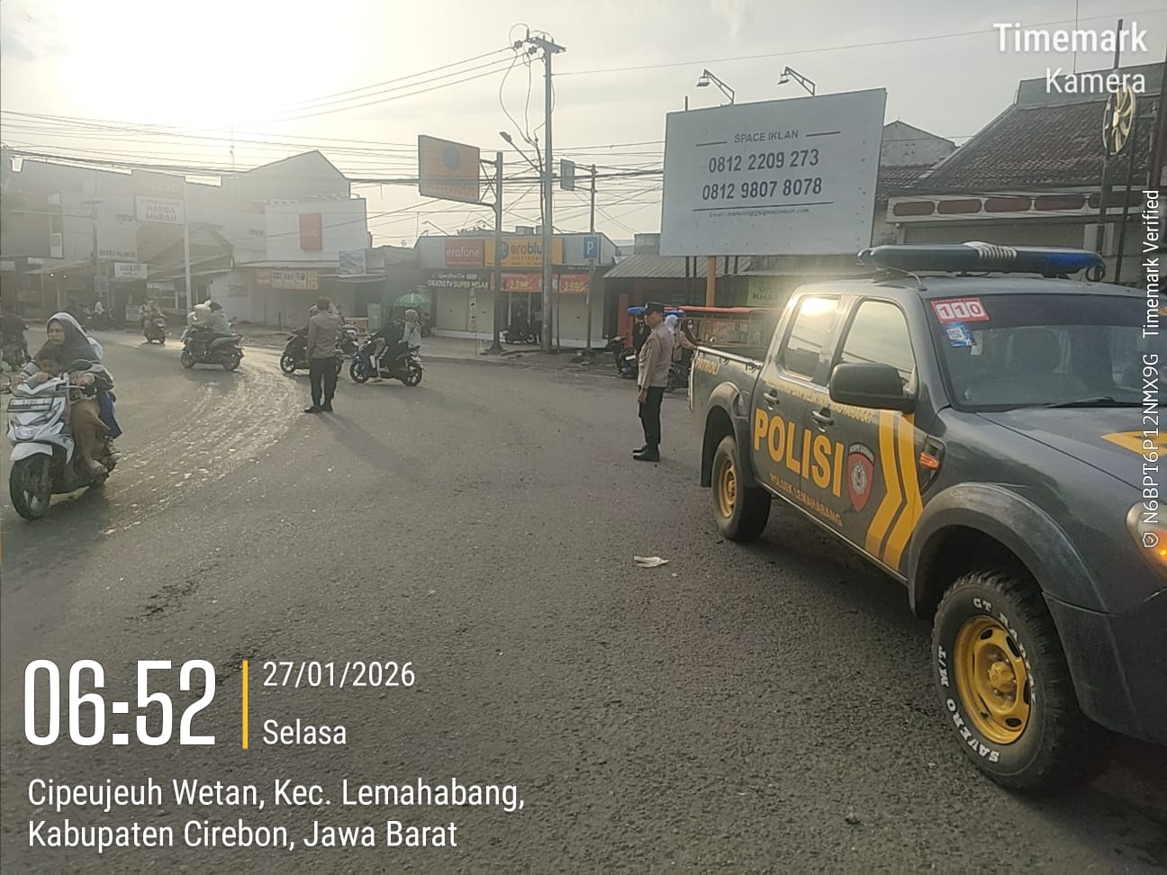 KAB. CIREBON – Pagi hari merupakan jam sibuk lalu lintas jalan, apalagi pada saat anak-anak sekolah mulai beraktifitas menuju sekolahnya masing-masing, hal ini tentu beresiko terjadinya beberapa kerawanan seperti kemacetan, pencurian dengan kekerasan, laka lantas dan bahkan tawuran anak sekolah, untuk itu sebagai salah satu bentuk kinerja kepolisian dalam melakukan pelayanan kepada masyarakat Polsek Lemahabang Polresta Cirebon melaksanakan kegiatan pengaturan lalu lintas diberbagai titik rawan di antaranya pertigaan Cipeujeuh, Selasa Pagi (27/01/2026).