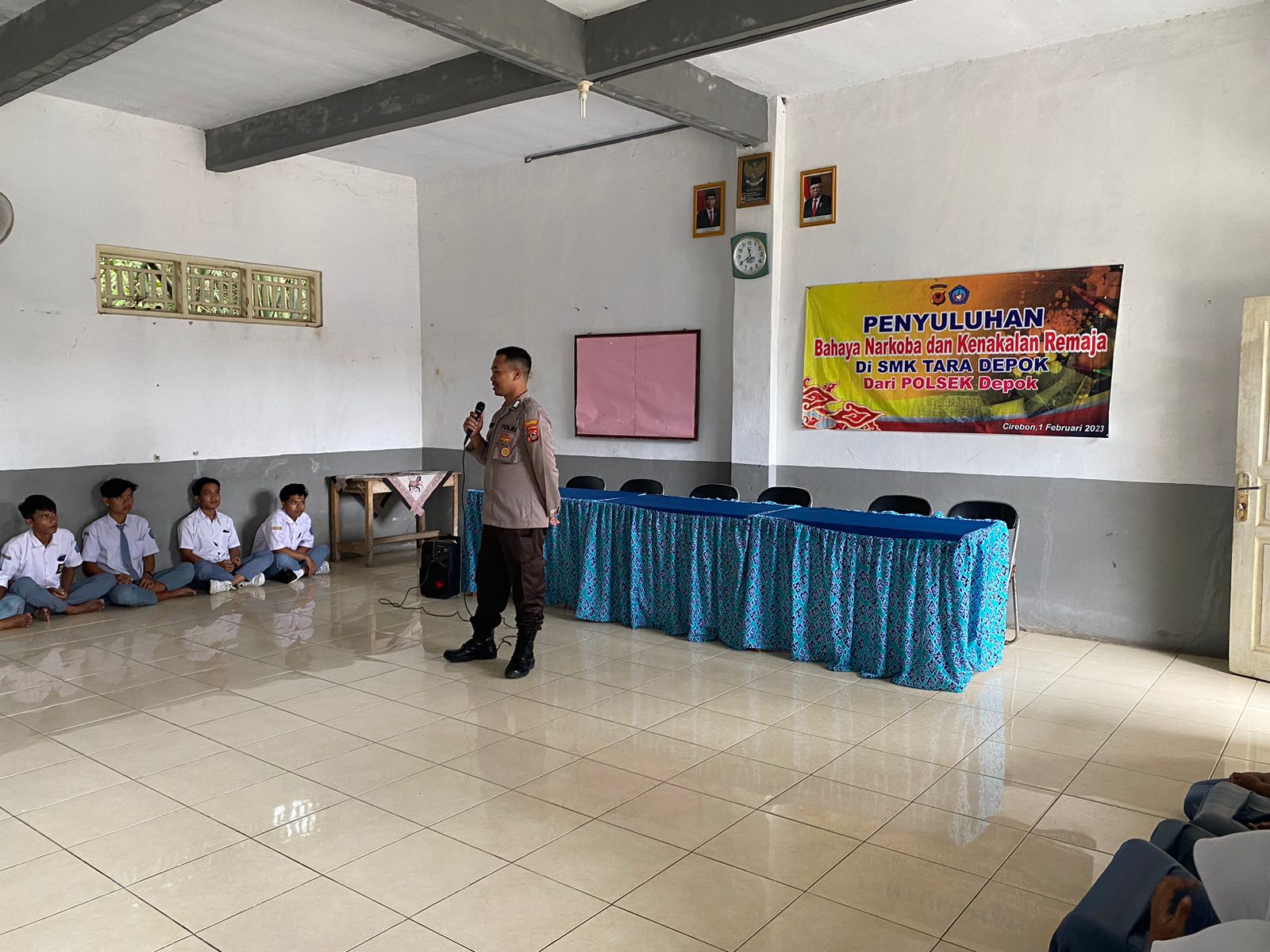 KAB. CIREBON – Mencegah tawuran pelajar dan kenakalan remaja dilakukan Ps. Kanit Bimas dan Staf Bimas Polsek Depok Porlesta Cirebon menggelar kegiatan pembinaan dan penyuluhan (Binluh) perkelahian antar pelajar, penyalahgunaan Narkoba,penyalahgunaan media internet dan anti Bullying kepada siswa/i SMK Tara Depok Desa Warujaya Kecamatan Depok Kabupaten Cirebon. Selasa(26/09/2023) pagi..