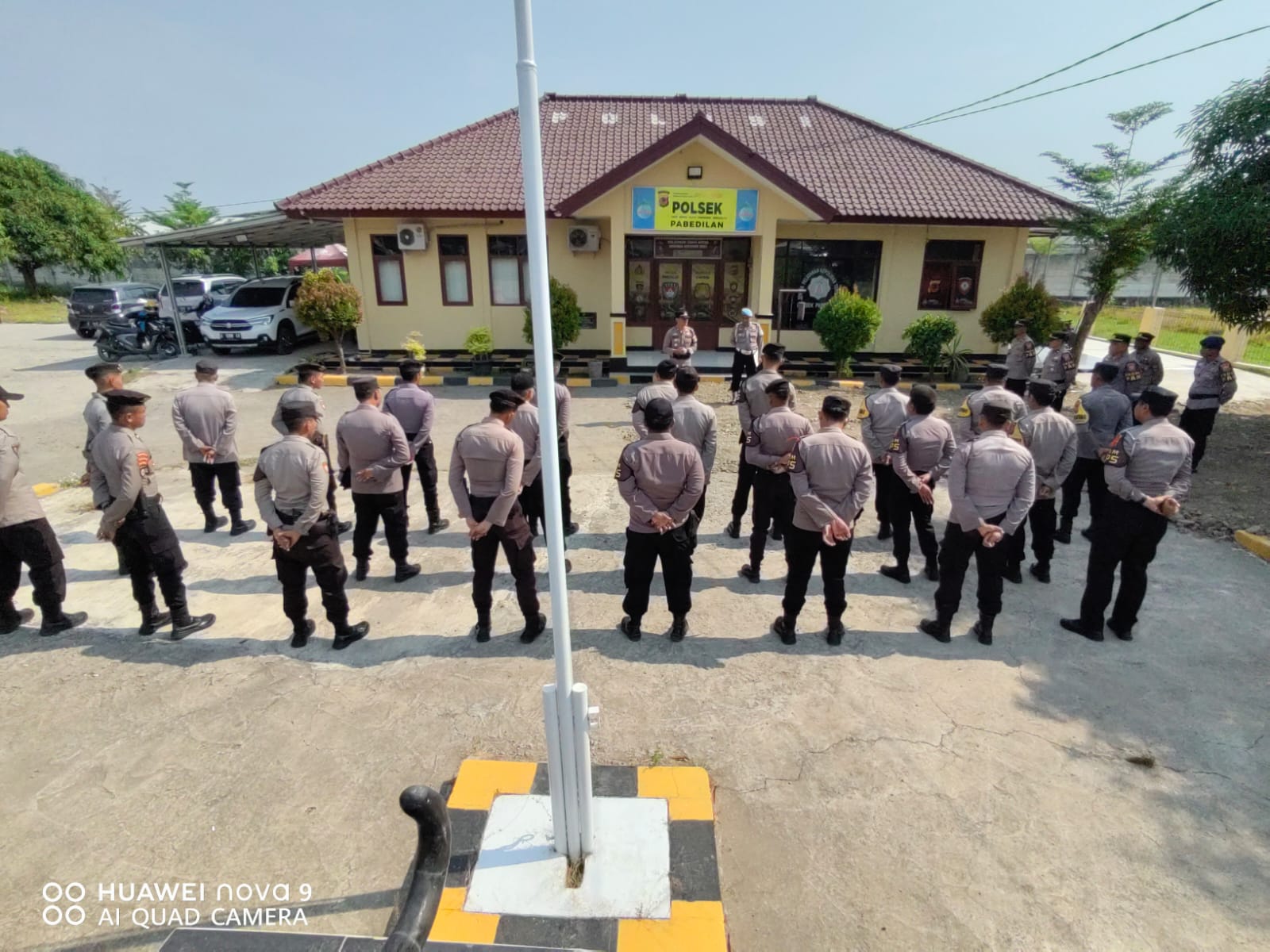 Sebanyak 41 Personil Anggota Kepolisian Baik Polsek Pabedilan maupun Polresta Cirebon yang di terjunkan dalam Pengamanan PAM TPS Pilwu Serentak Tahun 2023 di Wilayah Hukum Polsek Pabedilan Polresta Cirebon, dalam App nya saat Apel pergeseran pasukan Petugas PAM TPS baik Anggota organik Polsek Pabedilan maupun BKO dari Polresta Cirebon agar setelah Apel ini, tiap Anggota PAM TPS harus langsung bergeser dengan didampingi Para Bhabinkamtibmas ke Desa yang terdapat Pilwu Serentak Tahun 2023 sesuai dengan Sprin Kapolresta Cirebon.