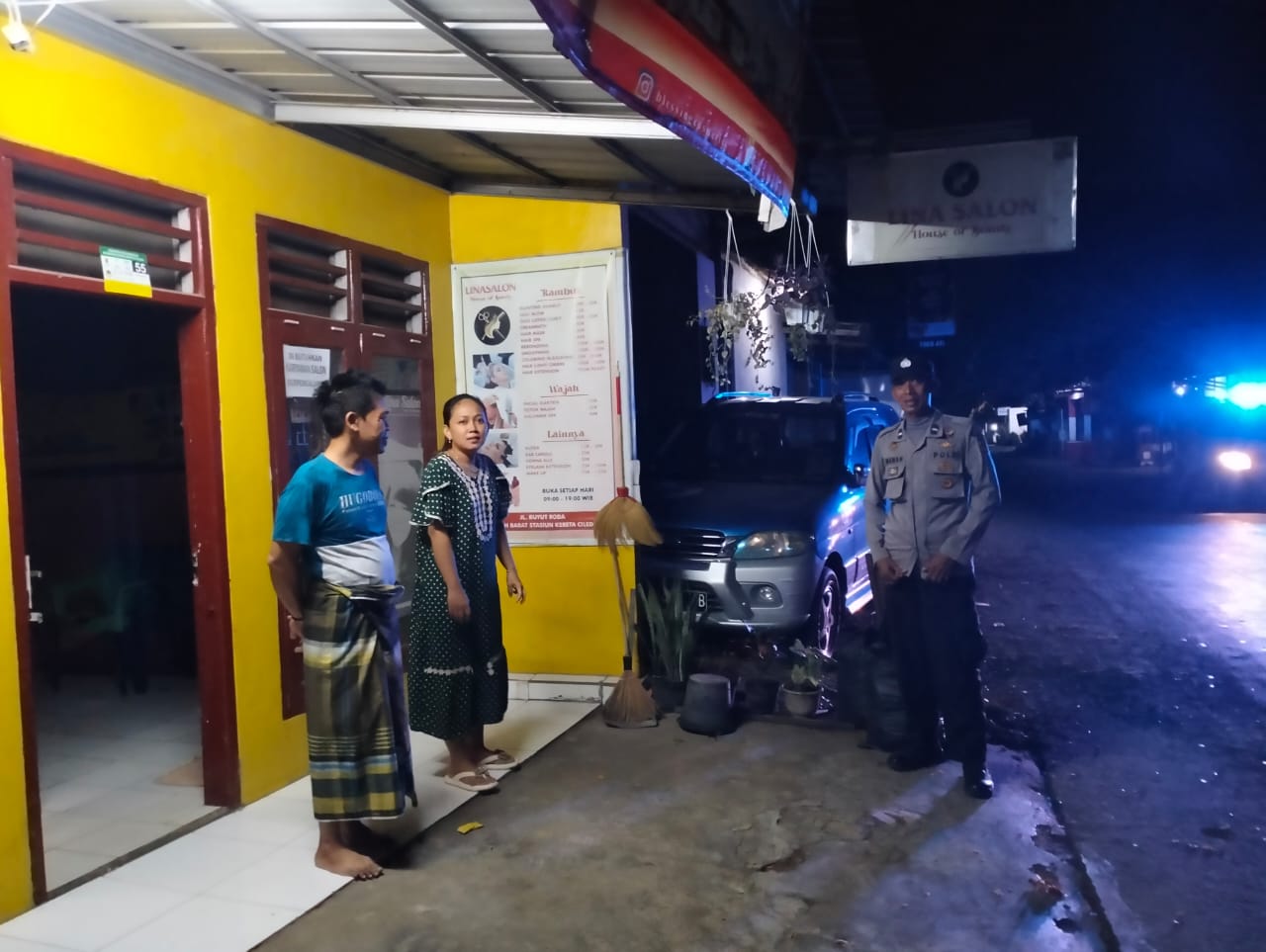 Giat Kepolisian dlm rangka cegah tangkal gangguan Kamtibmas, antisipasi C3, Genk motor dan tawuran menyampaikan himbauan kamtibmas dan mengajak berperan aktif memberikan informasi kamtibmas kepada warga dan anak-anak muda yang nongkrong agar segera membubarkan diri .