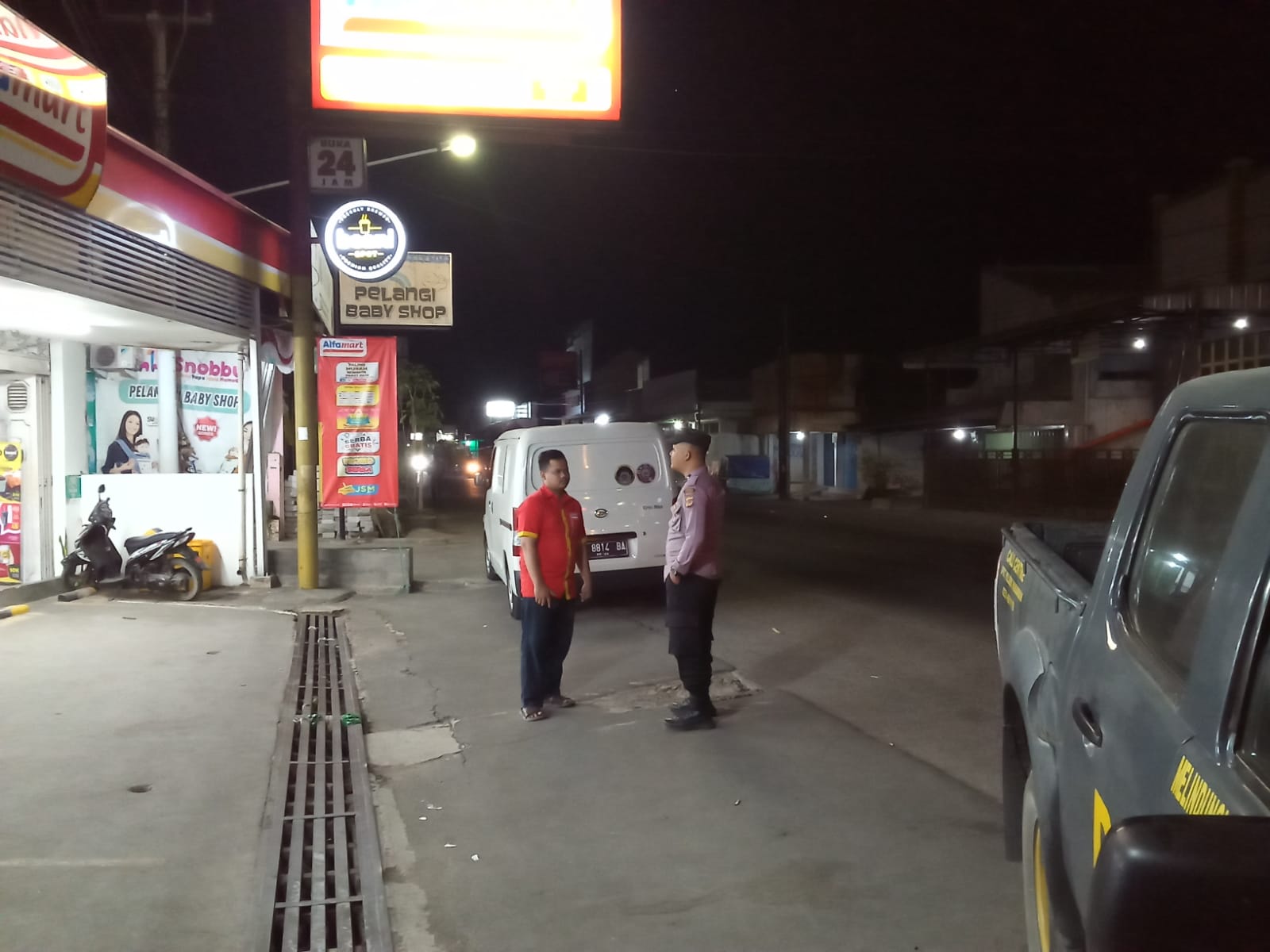 Giat Kepolisian dlm rangka cegah tangkal gangguan Kamtibmas, antisipasi C3, Genk motor dan tawuran menyampaikan himbauan kamtibmas dan mengajak berperan aktif memberikan informasi kamtibmas kepada warga dan anak-anak muda yang nongkrong agar segera membubarkan diri .