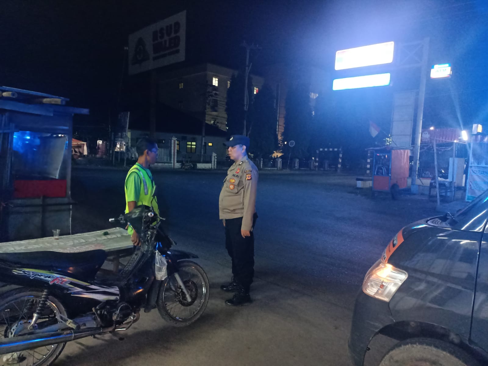 Giat Kepolisian dlm rangka cegah tangkal gangguan Kamtibmas, antisipasi C3, Genk motor dan tawuran menyampaikan himbauan kamtibmas dan mengajak berperan aktif memberikan informasi kamtibmas kepada warga dan anak-anak muda yang nongkrong agar segera membubarkan diri .