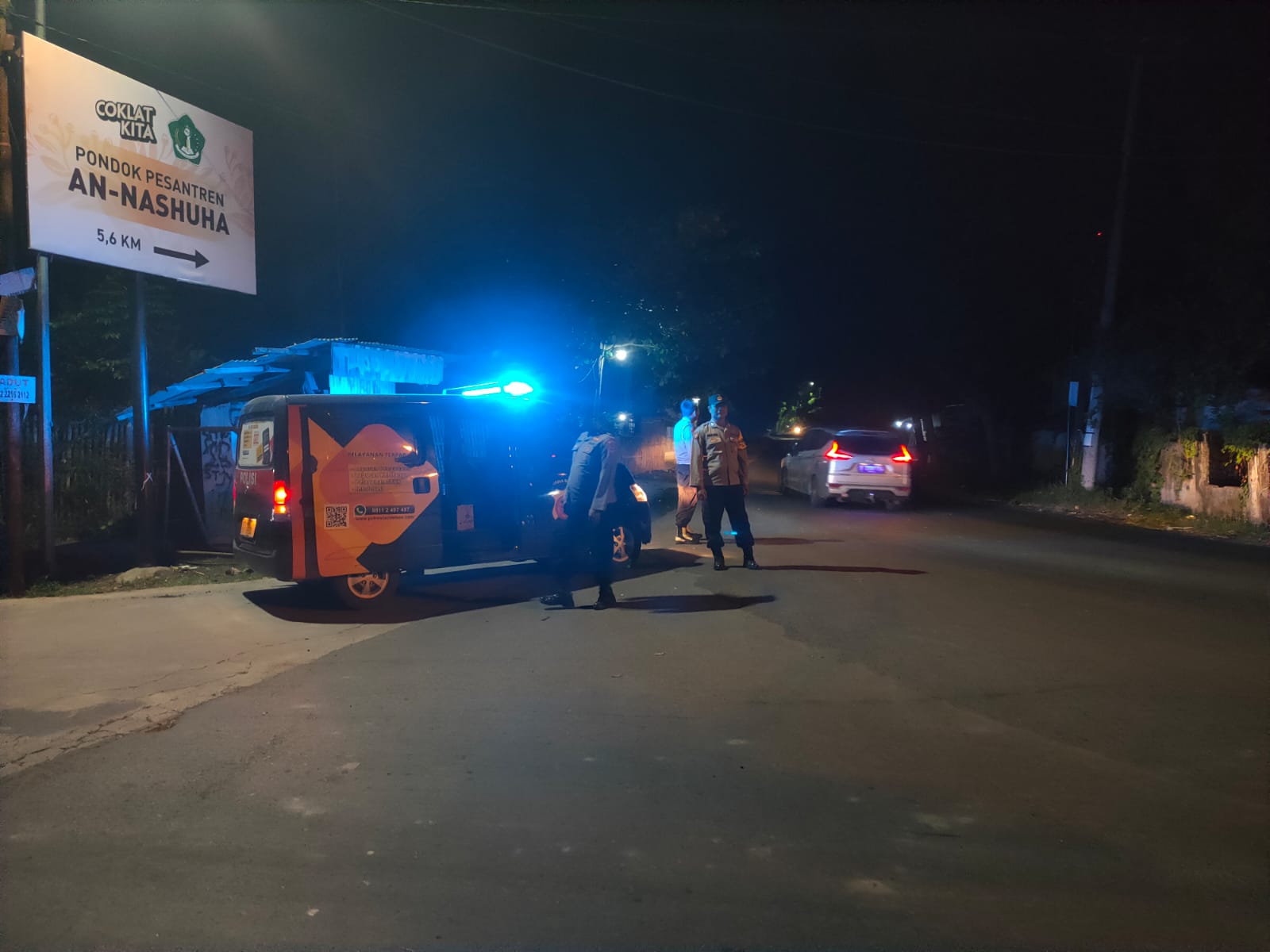 Giat Kepolisian dlm rangka cegah tangkal gangguan Kamtibmas, antisipasi C3, Genk motor dan tawuran menyampaikan himbauan kamtibmas dan mengajak berperan aktif memberikan informasi kamtibmas kepada warga dan anak-anak muda yang nongkrong agar segera membubarkan diri .
