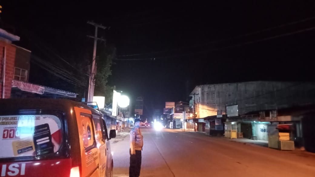 Giat Kepolisian dlm rangka cegah tangkal gangguan Kamtibmas, antisipasi C3, Genk motor dan tawuran menyampaikan himbauan kamtibmas dan mengajak berperan aktif memberikan informasi kamtibmas kepada warga dan anak-anak muda yang nongkrong agar segera membubarkan diri .