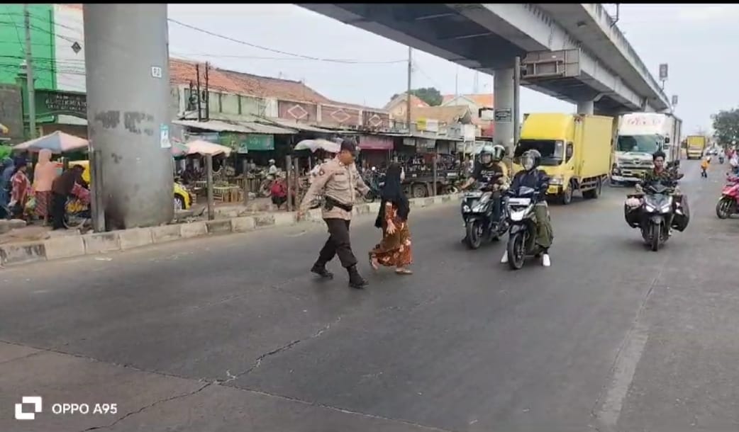 Dua anggota polsek Gebang Aiptu Bambang dan Aipda aipda Ardiansah dengan sigap laksanakan pengaturan di jalan sehingga arus lalin lancar dan masyarakat yang menyebrang jalan aman dan sampai tujuan.