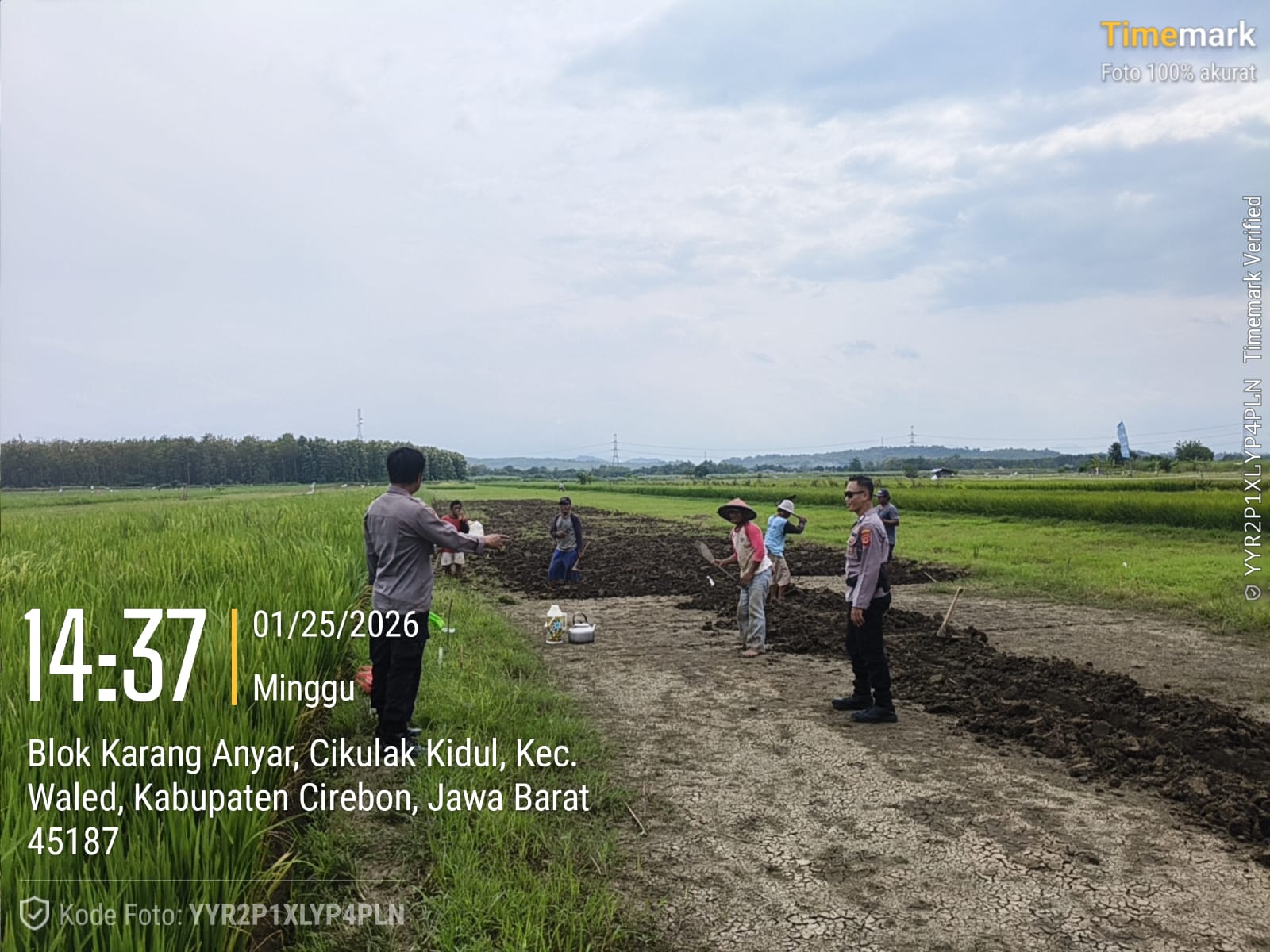 CIREBON – Polsek Waled Polresta Cirebon terus menunjukkan komitmennya dalam mendukung program ketahanan pangan nasional. Pada Minggu (25/1/2026) sore, jajaran personel Polsek Waled melaksanakan kegiatan pemantauan dan kontrol langsung terhadap persiapan lahan tanam jagung pipil di Blok Karanganyar, Desa Cikulak Kidul, Kecamatan Waled, Kabupaten Cirebon.