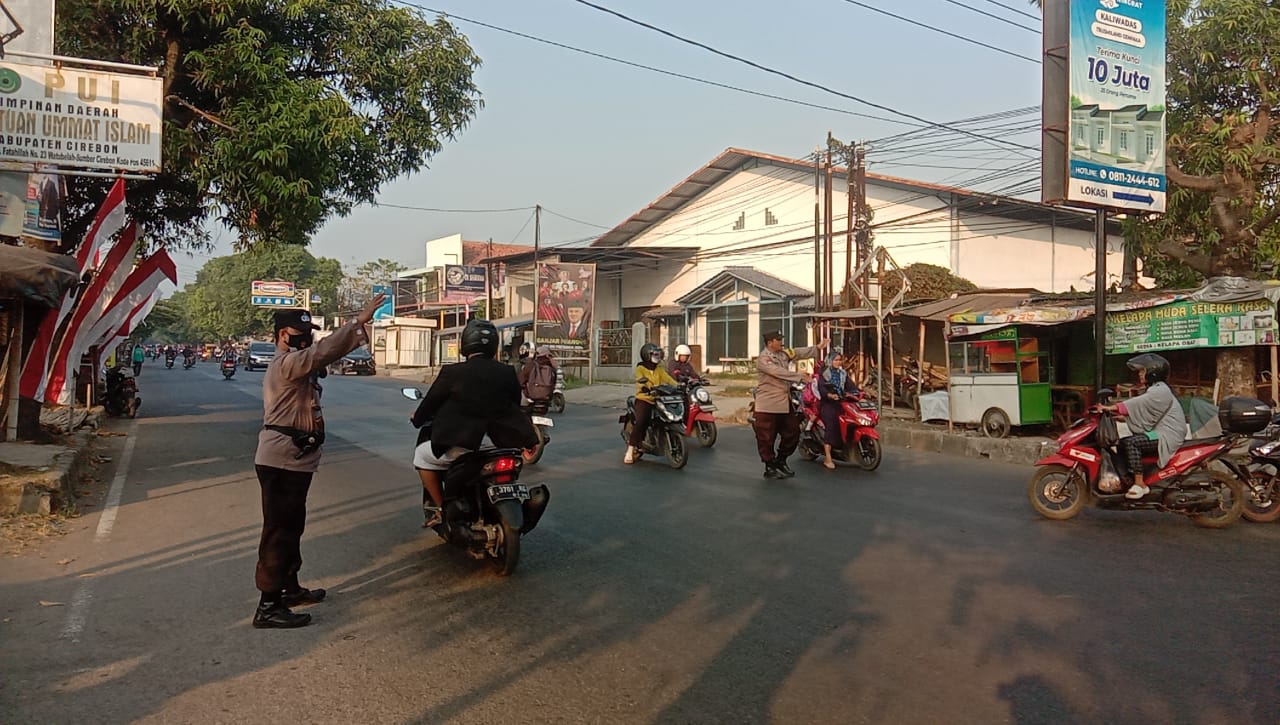 Rutinitas pagi hari dan Guna kelancaran arus lalu lintas anggota Polsek Sumber melaksanakan penjagaan pengaturan (Gatur) lalu lintas pagi hari.