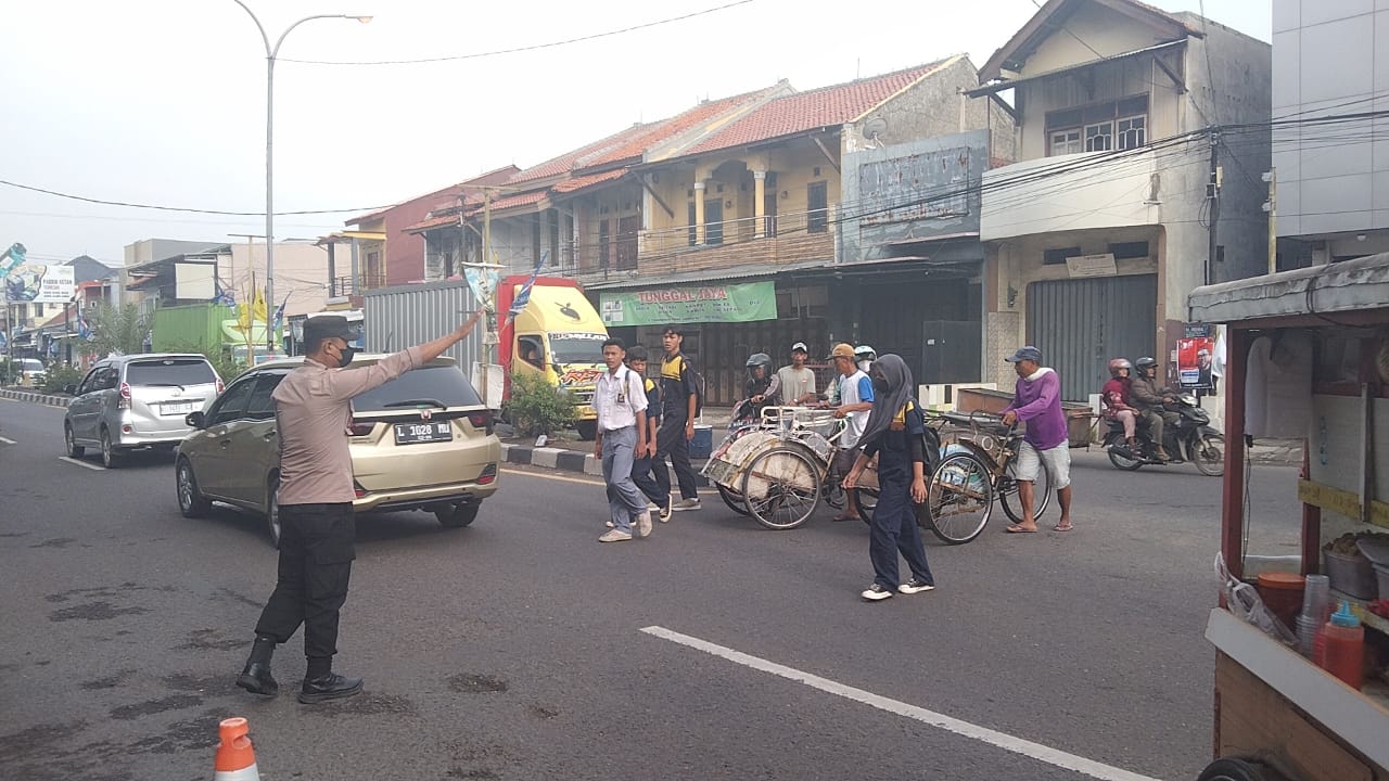 Jajaran Personil Polsek Plered Polresta Cirebon Polda Jabar, melaksanakan Gatur Lalu lintas pagi di Jaln Raya Palimanan – Cirebon tepatnya di depan SMK Nusantara Ds. Panembahan Kec Plered Kab Cirebon.
