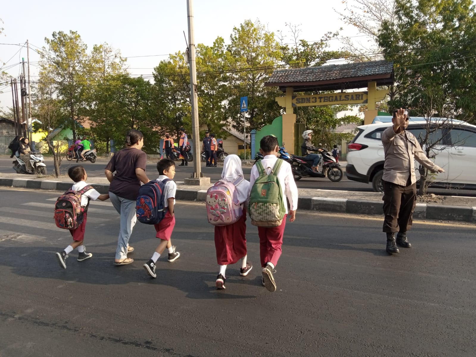 Polsek Plered melaksanakan Gatur Lalu lintas pagi di Jaln Raya Otista tepatnya di depan SDN3 Tegalsari dan SMPN 2 Plered Ds. Tegalsari Kec Plered Kab Cirebon.