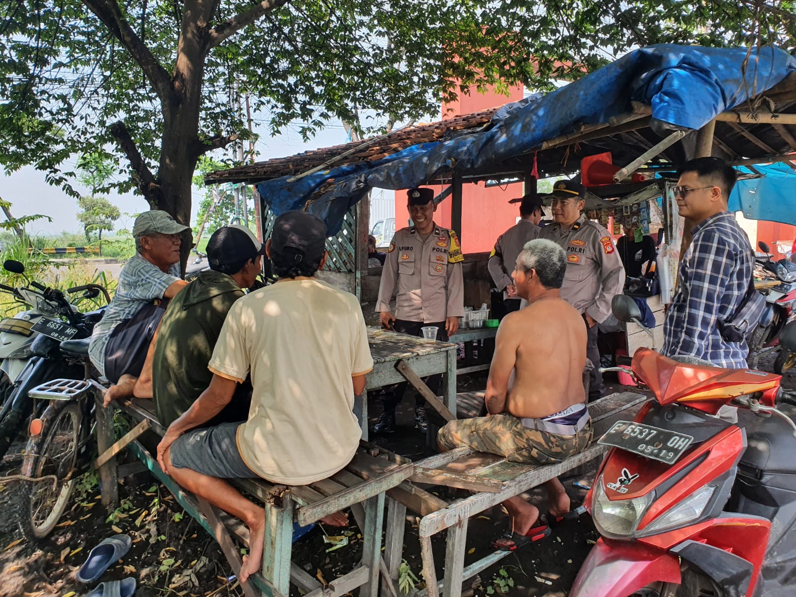 Pangenan. AKP Sukendri selaku Kapolsek Pangenan Polresta Cirebon Polda Jabar, berikut dengan anggota Aipda Moch Syaipudin mendengarkan aspirasi serta masukan dari warga kuli garam melalui program Jumat Curhat seluruh Desa kec pangenan, Jumat, (07/03/24)