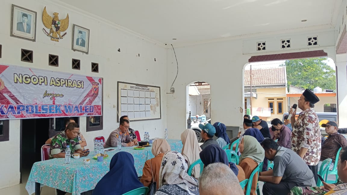 Waled, 01/03/2024, Akp Kentar Budi Sadiyono SH selaku Kapolsek Waled Polresta Cirebon Polda Jabar, berikut dengan para kanit dan Bhabinkamtibmas mendengarkan aspirasi serta masukan dari Aparat Desa dan warga masyarakat melalui program Jumat curhat di Desa Cikulak kec Waled,