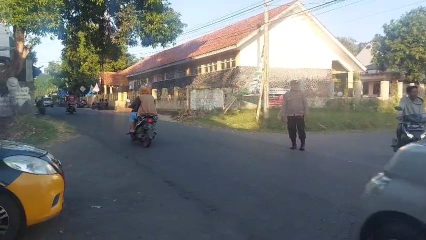 Sedong – Personil Polsek Sedong Polresta Cirebon Aipda Tarjim bersama Brigadir Susento dan Briptu Yoggi Iskandar melaksanakan Pengaturan lalulintas diPerempatan jalan Pasar Sedong tepatnya Desa Sedonglor Kecamatan Sedong Kabupaten Cirebon.