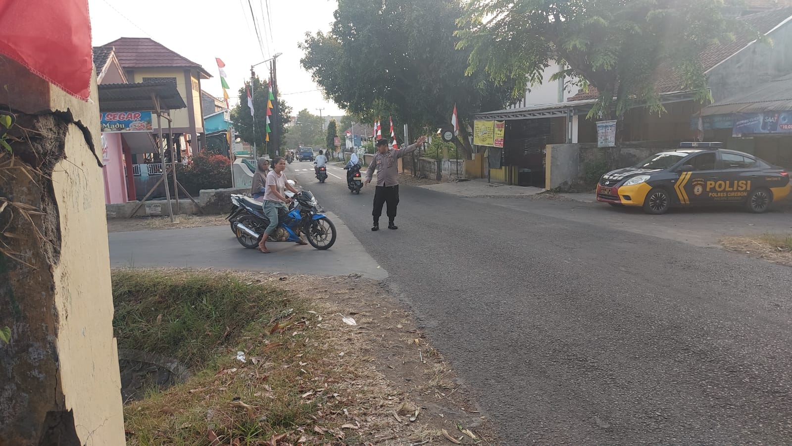 CIREBON – Personil Polsek Sedong Polresta Cirebon Aipda Tarjim bersama Brigadir Susento dan Briptu Yoggi Iskandar melaksanakan Pengaturan lalulintas diPerempatan jalan Pasar Sedong tepatnya Desa Sedonglor Kecamatan Sedong Kabupaten Cirebon.