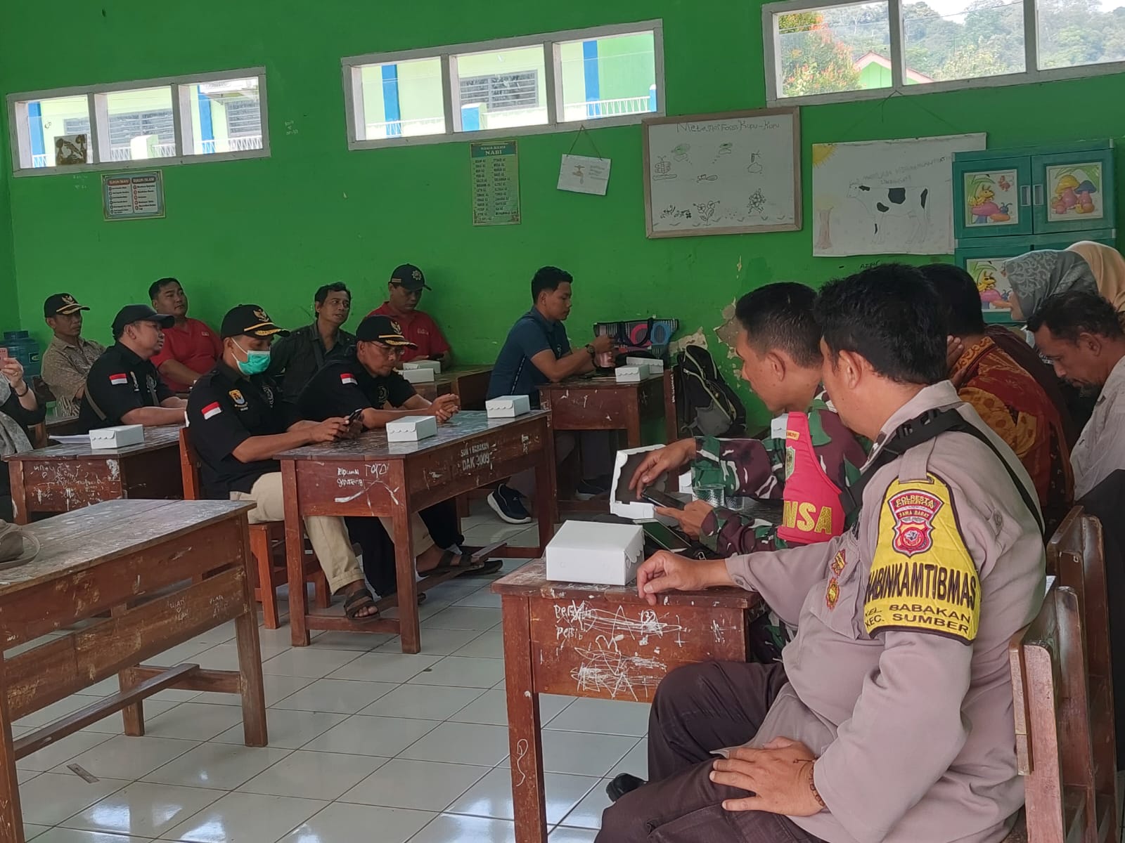 Terlihat Bhabinkamtibmas dan Babinsa hadir di wilayah di SDN 1 Babakan untuk mengikuti kegiatan rapat Daftar Pemilih sementara Hasil Perbaikan (DPSHP).