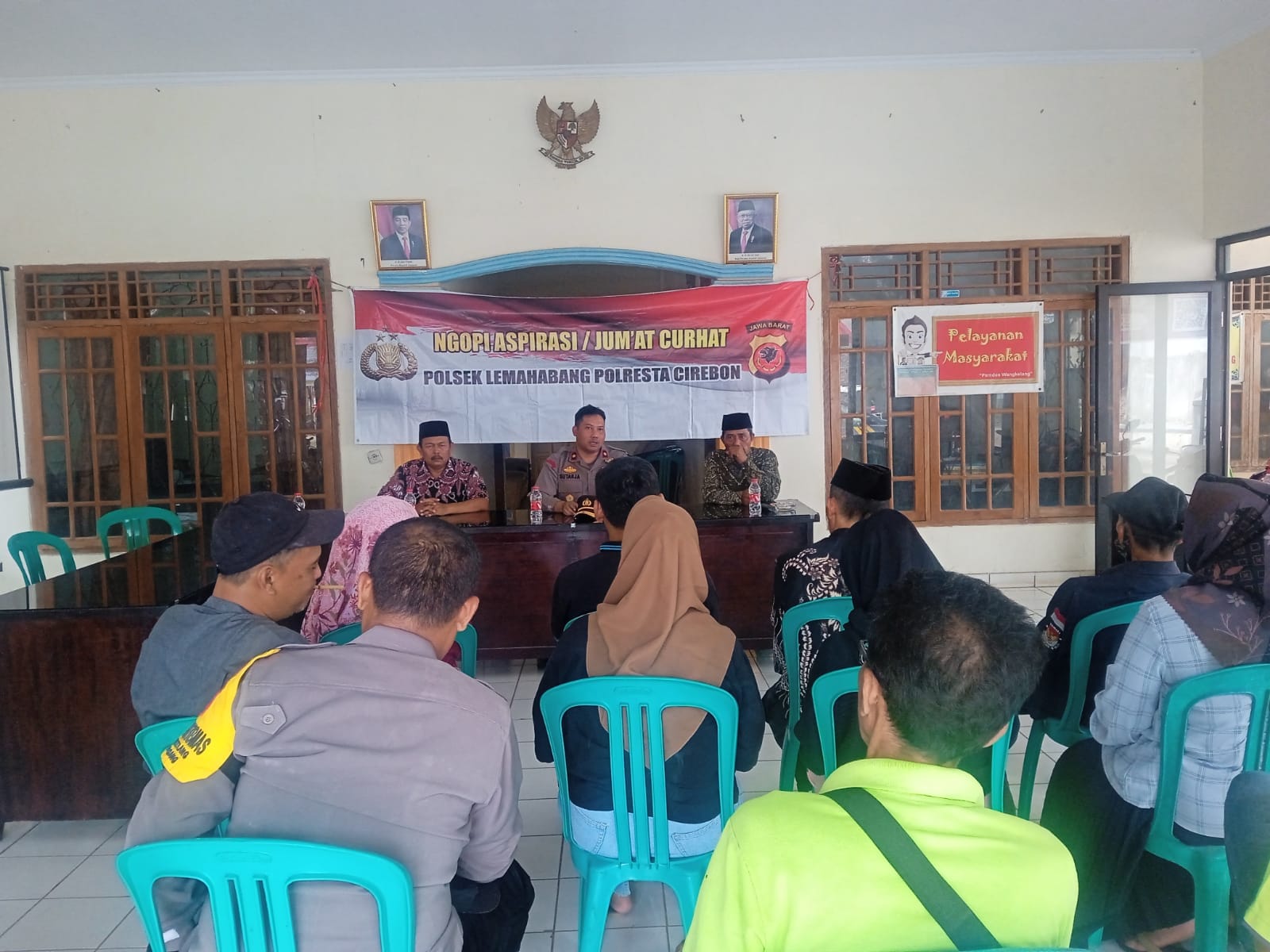 Lemahabang – Kapolsek Lemahabang Kompol Sutarja, SH., MH. bersama para Kanit dan anggota Polsek Lemahabang menggelar jumat curhat di Desa Wangkelang Kecamatan Lemahabang Kabupaten Cirebon, hal ini bertujuan untuk mendengarkan aspirasi, keluhan, saran serta kritik dari masyarakat secara langsung untuk membangun kinerja Polri yang lebih baik., Jumat siang (12/04/2024)