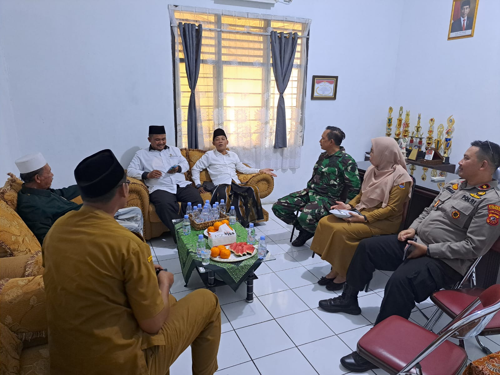 Kapolsek Lemahabang Kompol Sutarja, SH., MH. dan Forkopimcam Kecamatan Lemahabang bersama para Kanit / Panit serta personil Polsek Lemahabang mendengarkan dan menjawab masukan serta kritik dan saran membangun dari ketua MUI Kecamatan Lemahabang KH. Ikhsan Aziz beserta stafnya yang hadir.