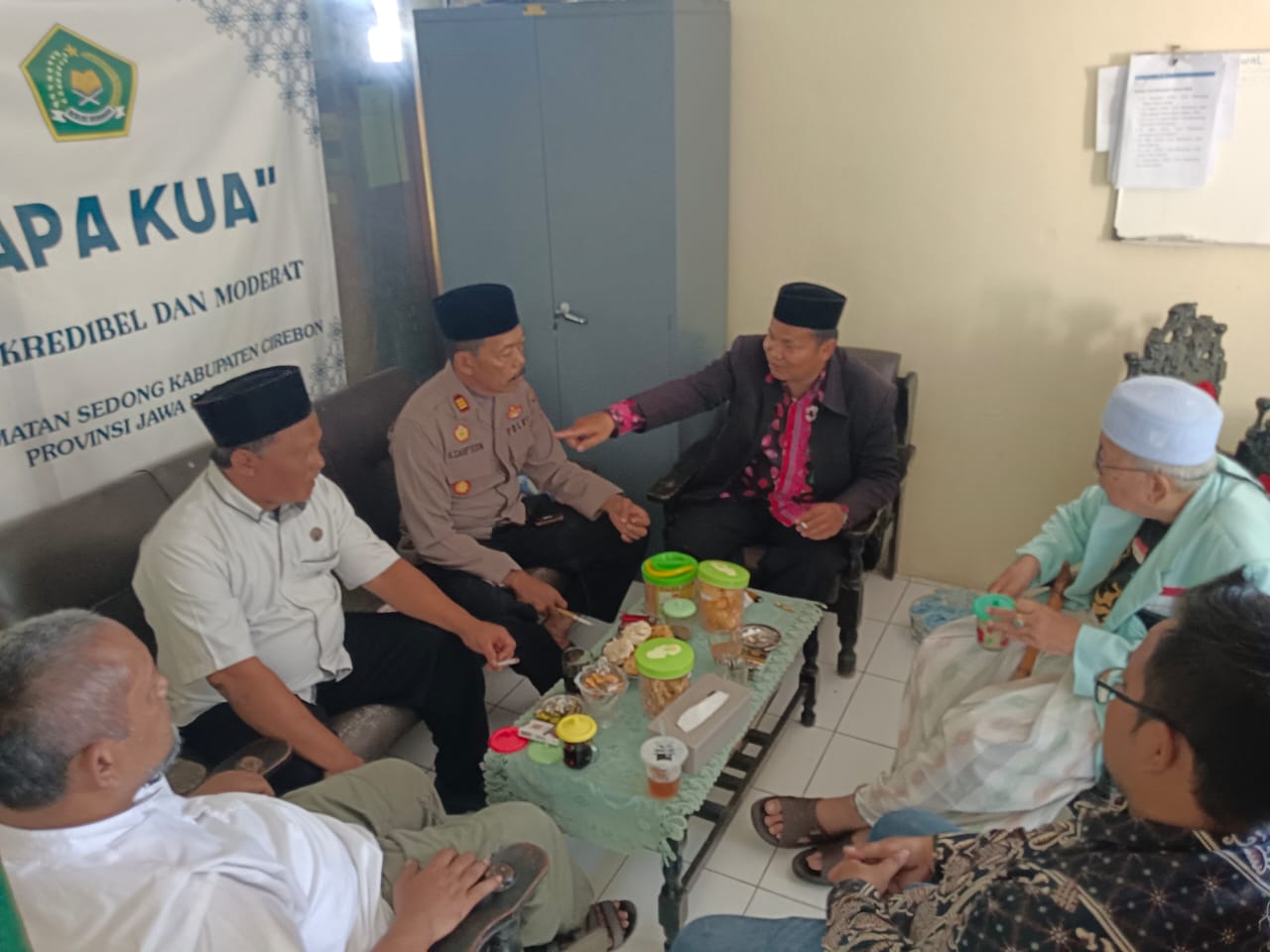 Giat Jum’at Curhat dilakukan Polsek Sedong dengan berkumpul bersama Kepala KUA, Ketua MUI, tokoh-tokoh dan masyarakat untuk menampung aspirasi dan informasi tentang kamtibmas dilingkungan Kecamatan Sedong. AKP Ujang Sarifudin, SH. Kapolsek Sedong bersama Kanit Binmas melaksanakan giat Jum’at Curhat di Kantor Urusan Agama (KUA) ngobrol bareng bersama Bpk. H. Apip Latifudin Hayat, S.Hi, M.Pdl., KH. Hasanuddin Jajuli, H. Rahmat, dan para tokoh ulama. Menampung informasi dan problem atau permasalahan-permasalahan dilingkungan kecamatan sedong dan bersama-sama mencari solusi nya.