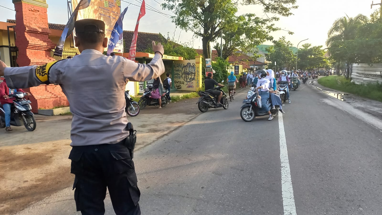 KAB. CIREBON – Sudah menjadi kebiasaan rutin untuk memberikan pelayanan terbaik kepada masyarakat. Seperti yang terlihat personil Polsek Waled Polresta Cirebon saat melaksanakan kegiatan pelayanan masyarakat berupa pengaturan lalu lintas pagi hari di depan SMA negeri 1 Waled jLn Dewi Sartika termasuk Desa Waledkota Kec Waled Kab Cirebon.