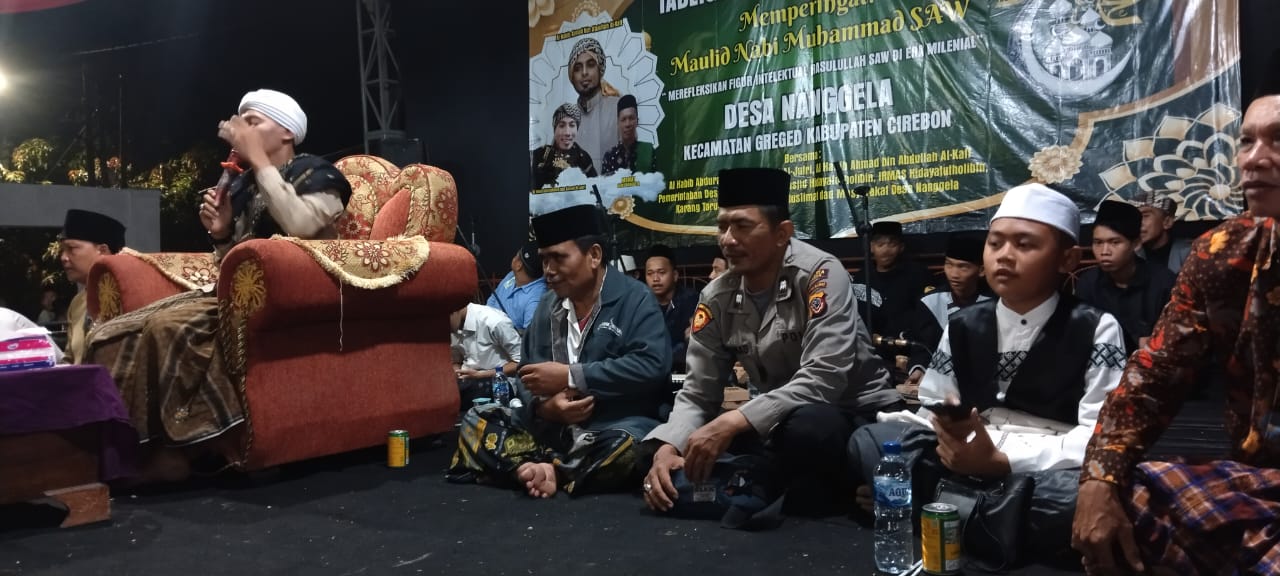 Beber(28/10/2023) Polsek Beber Polresta Cirebon dalam hal ini Kanit Binmas Polsek Beber Aiptu Achmad Yani menghadiri acara Maulid Nabi Besar Muhammed SAW di Desa Nanggela kecamatan Greged Kab Cirebon Wilkum Polsek Beber.