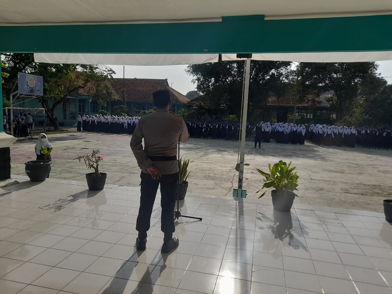 “Kanit Samapta Ipda Hilson dalam arahannya menyampaikan tentang kenakalan remaja, Bulying, bahaya narkoba, tertib berlalu-lintas dan berkendara tidak boleh memakai knalpot tidak sesuai spesifikasi teknis, maka dari itu mari kita jaga Kamtibmas khususnya di lingkungan sekolah, jangan sampai terlibat tindak pidana yang dapat merugikan diri sendiri dan orang lain serta keluarga.” Ucap Hilson.