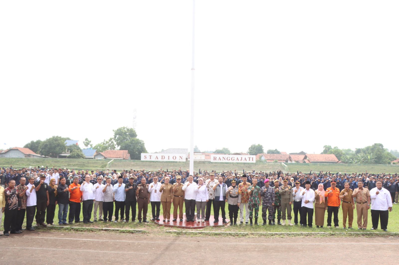 Kapolresta Cirebon, Kombes Pol Sumarni, S.I.K, S.H, M.H, menghadiri Apel Kesiapan dan Do’a Bersama Pelaksanaan Pemungutan dan Penghitungan Suara Pemilu 2024 di Stadion Ranggajati, Kecamatan Sumber, Kabupaten Cirebon, Senin (12/2/2024). Kegiatan tersebut dihadiri Forkopimda hingga penyelenggara dan pengawas Pemilu 2024 tingkat Kabupaten Cirebon.