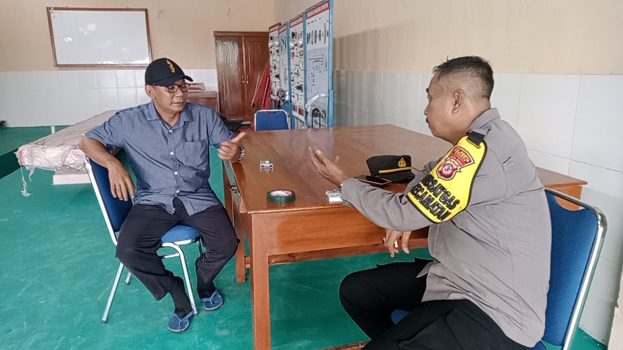 Arjawinangun – Dalam rangka Police Go To School cegah kenakalan remaja serta menciptakan Kamtibmas yang aman di Wilkum Polsek Arjawinangun, Kapolsek Arjawinangun AKP. Sumairi SH.M.Si pada saat memonitor wilayah bersama anggotanya sambangi guru pengajar SMK Wahidin Arjawinangun, dalam kegiatan tersebut Kapolsek Arjawinangun AKP. Sumairi SH.M.Si mengadakan koordinasi sehubungan akan di laksanakan Police Go to School untuk mengadakan pembinaan para pelajar di sekolah sekolah serta menyampaikan pesan pesan Kamtibmas kepada guru pengajar untuk selalu bersama sama cegah kenakalan remaja khususnya para pelajar guna menciptakan Kamtibmas aman kobdusip, Kamis 22/02/2024
