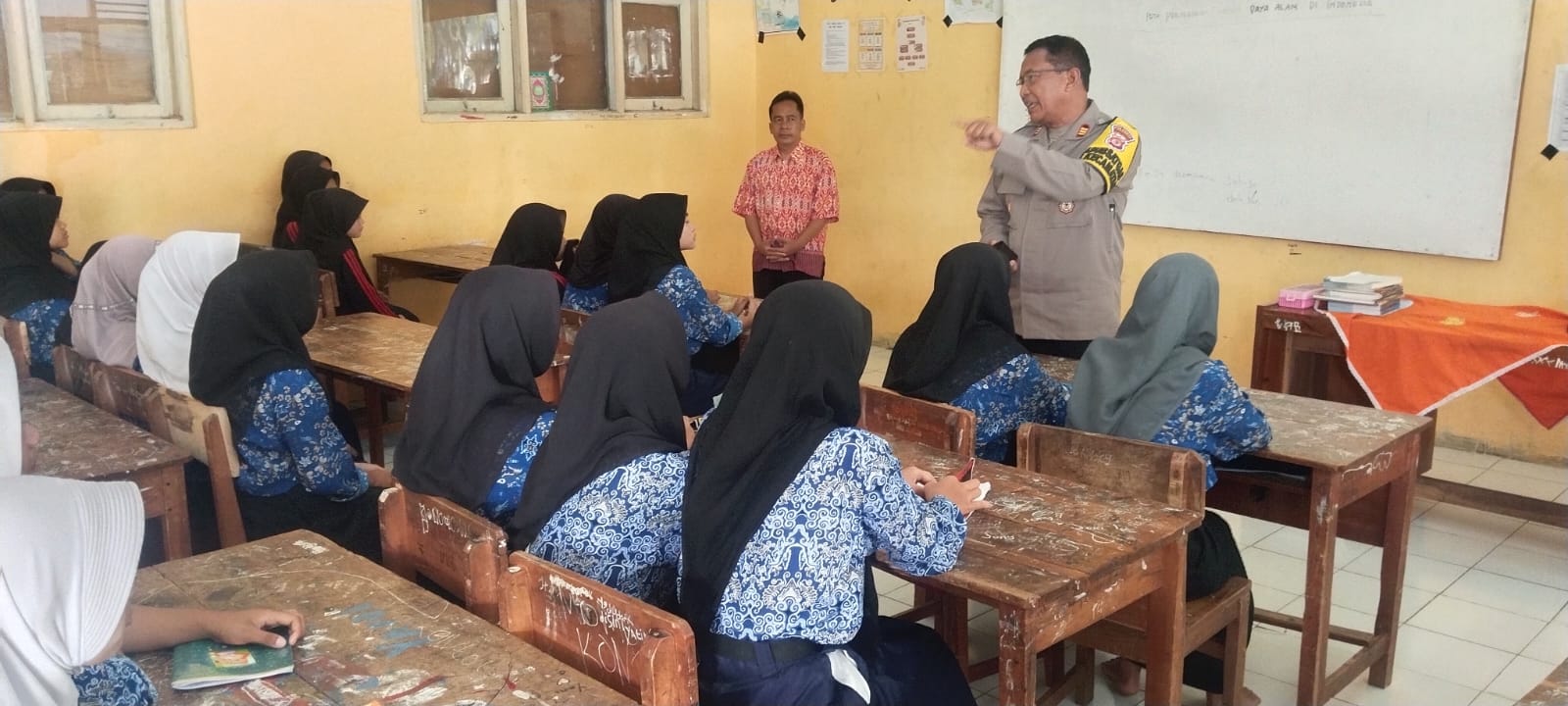 KAB. CIREBON – Kapolsek Beber AKP Eddie Mulyono SH dan Ps Kanit Binmas berhasil memberikan sosialisasi Kamtibmas kepada para pelajar SMP PGRI Greged Desa Lebakmekar kecamatan Greged Wilkum Polsek Beber, pada kegiatan Police Goes to School yang digelar pada Selasa, 05 Maret 2024.