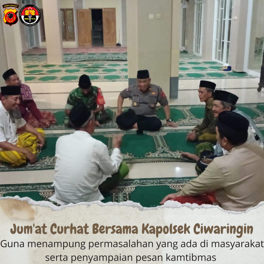 Kapolresta Cirebon Kombes Pol. Sumarni, S.I.K, SH. MH. melalui Kapolsek Ciwaringin AKP Baban Kurbandi, mengatakan cara terbaik untuk mendekatkan diri di masyarakat, Polri harus dekat dan mau mendatangi langsung warga untuk bersilaturahmi dan bersama-sama duduk bersanding guna menampung keluhan dari masyarakat, dengan program Jum’at Curhat ini bisa menampung aspirasi dan bisa menyelesaikan masalah serta lebih mendekatkan diri dari sisi Agama.