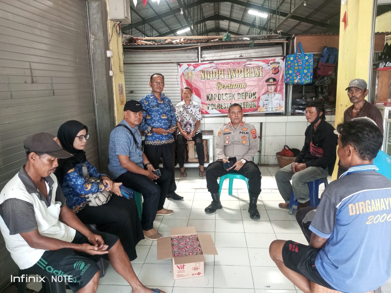 Polsek Depok Polresta Citebon- Kapolsek, atau Kepala Kepolisian Sektor, memiliki tanggung jawab untuk menjaga ketertiban dan keamanan di wilayahnya. Salah satu cara untuk membangun hubungan yang baik dengan masyarakat dan mendengarkan aspirasi mereka adalah dengan menggelar acara “Ngopi Aspirasi”. Dalam hal ini, Kapolsek Depok Akp Afandi, S.H., M.H beserta para kanit mengadakan acara tersebut di pasar tradisional Jamblang Desa Kasugengan Lor Kecamatan Depok Kabupaten Cirebon. Jum’at (17/11/2023) pagi.